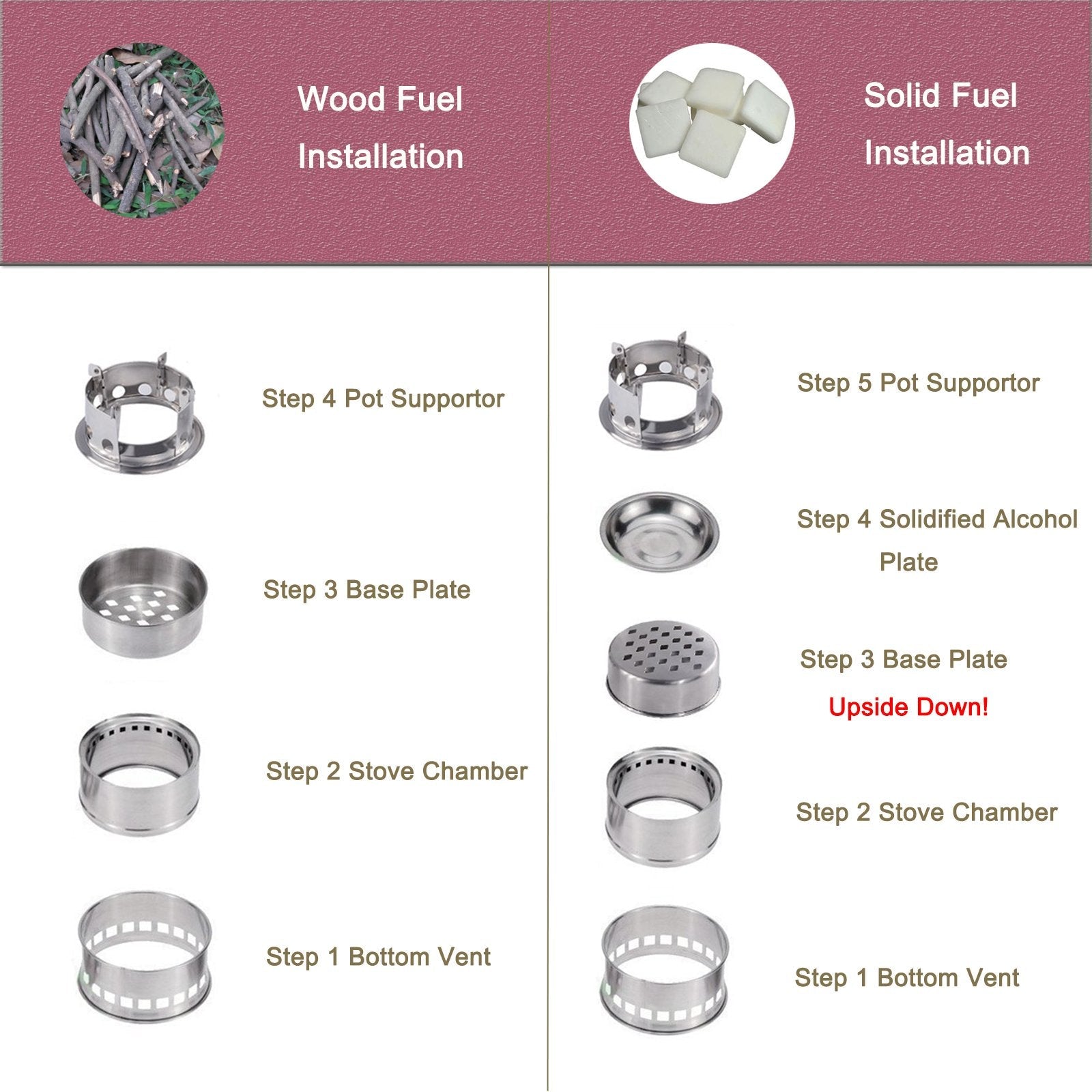 • CAMPING STOVE OPEN MOUTH DESIGN: Easy to add fuel. Get rid of inconvenience of keep lifting up the cooking pot/pan to add more fuel when using the old version top-loader stoves.