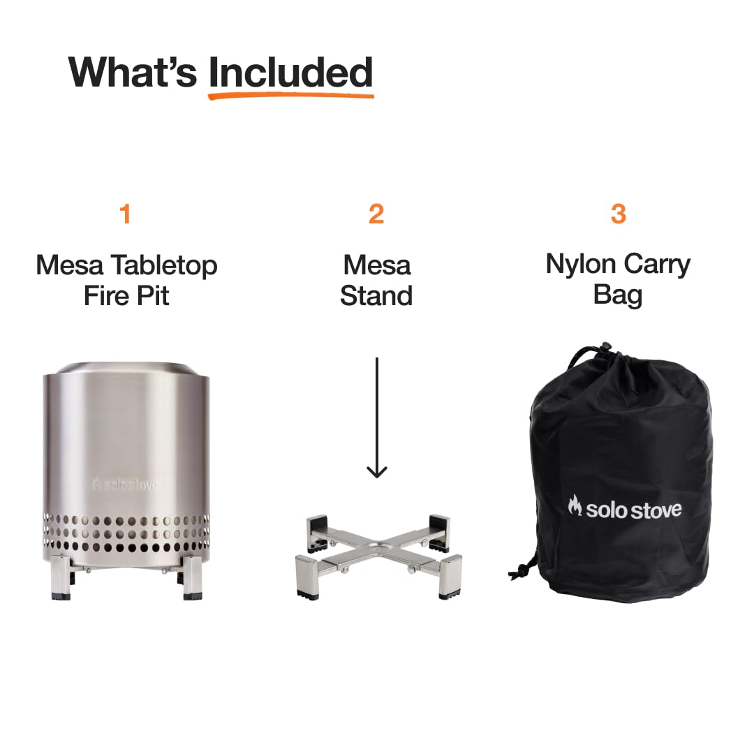 Solo Stove Mesa XL, 7 Inch Tabletop Fire Pit with Stand - Smokeless, Stainless Steel Fire Pit for Camping, Outdoor & Patio- Wood Burning or Pellet Fueled Portable Bonfire, 2.3lbs, Gunmetal