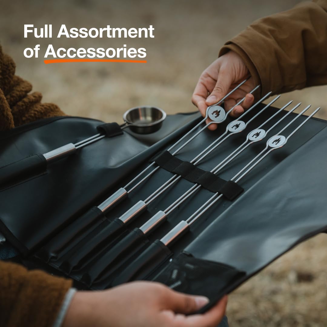 • LASTS FOR YEARS: Crafted from durable, lightweight 304 stainless steel, this fire pit is built to last for years. Perfect as a tabletop fire pit or portable fire pit, it includes a stand for better stability and folds for easy storage and portability