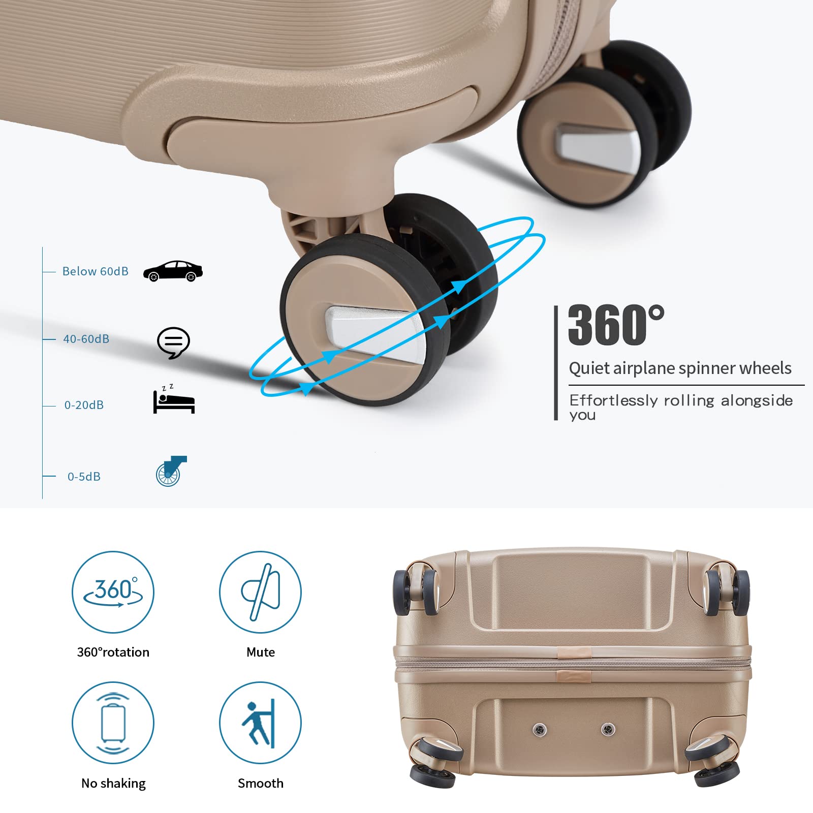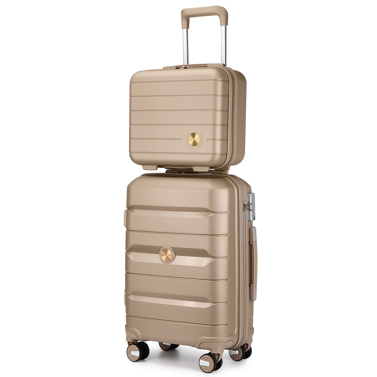 Somago 20" Carry On Luggage and 14" Mini Cosmetic Cases Travel Set Spinner Lightweight Polypropylene Suitcase with TSA Lock YKK Zipper Hardside Luggage Sets 2 Piece (Noble Golden, 2-Piece Set (14/20))