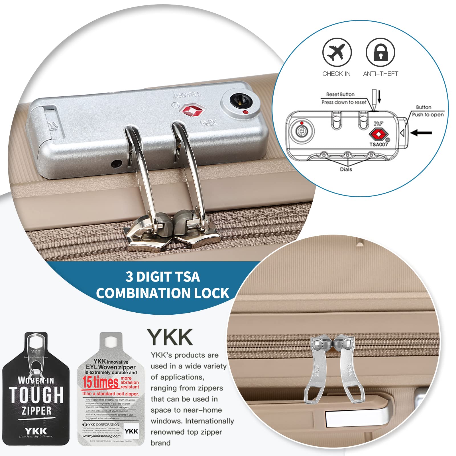 • TSA LOCK & YKK ZIPPER: This spinner suitcase built-In TSA lock, it provides security when checked belongings. Safer and saving your time for check, Great for international travel. It equipped with YKK zipper that used in most entry luxury brand hard shell suitcase. It uses 5 strands thread to protect the rubber teeth from deformation and lifting, 3 times stronger than normal zipper (Ordinary zippers only use 2 strands thread).