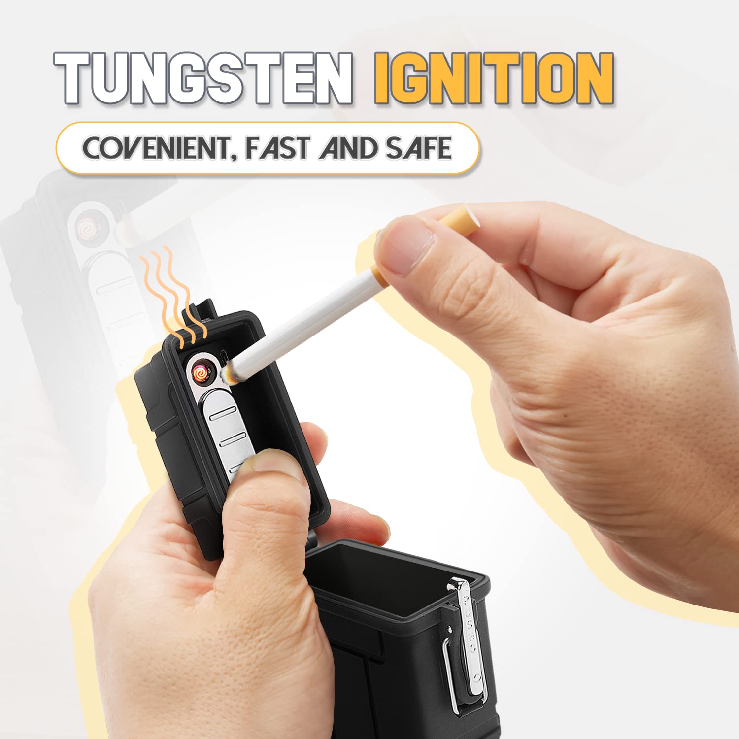 SOMGEM Cigarette Case with USB Rechargeable Electric Lighter for Whole Package Cigarettes 20pcs, Waterproof Cigarette Holder for Outdoor Camping Hiking