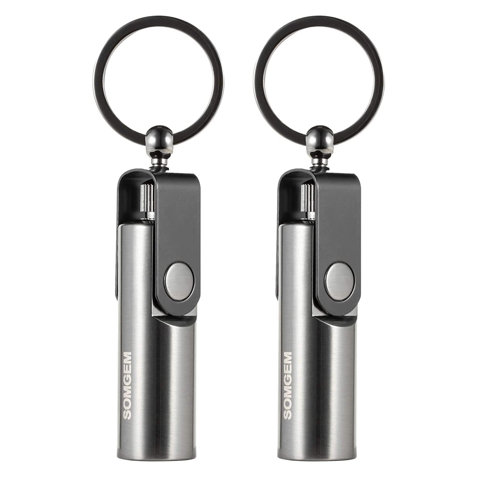 SOMGEM Permanent Match Keychain 2 Pack, Kerosene Refillable, Waterproof Flint Fire Starter for Outdoor Camping Emergency Survival Gear