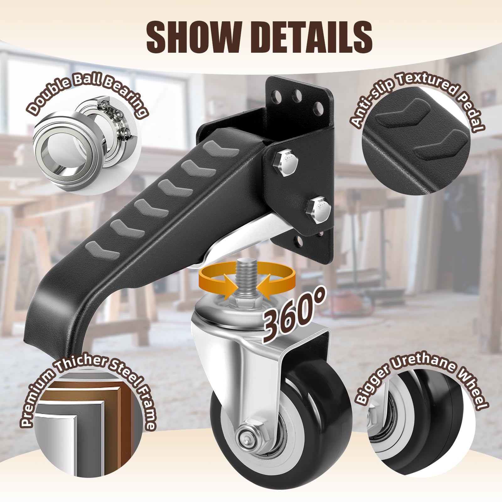 SPACECARE Workbench Casters kit 900Lbs Heavy Duty Quick Release 2 Mounting Options Retractable Workbench Stepdown Caster Wheels Adjustable Polyurethane Durable Steel Construction (Set of 4)