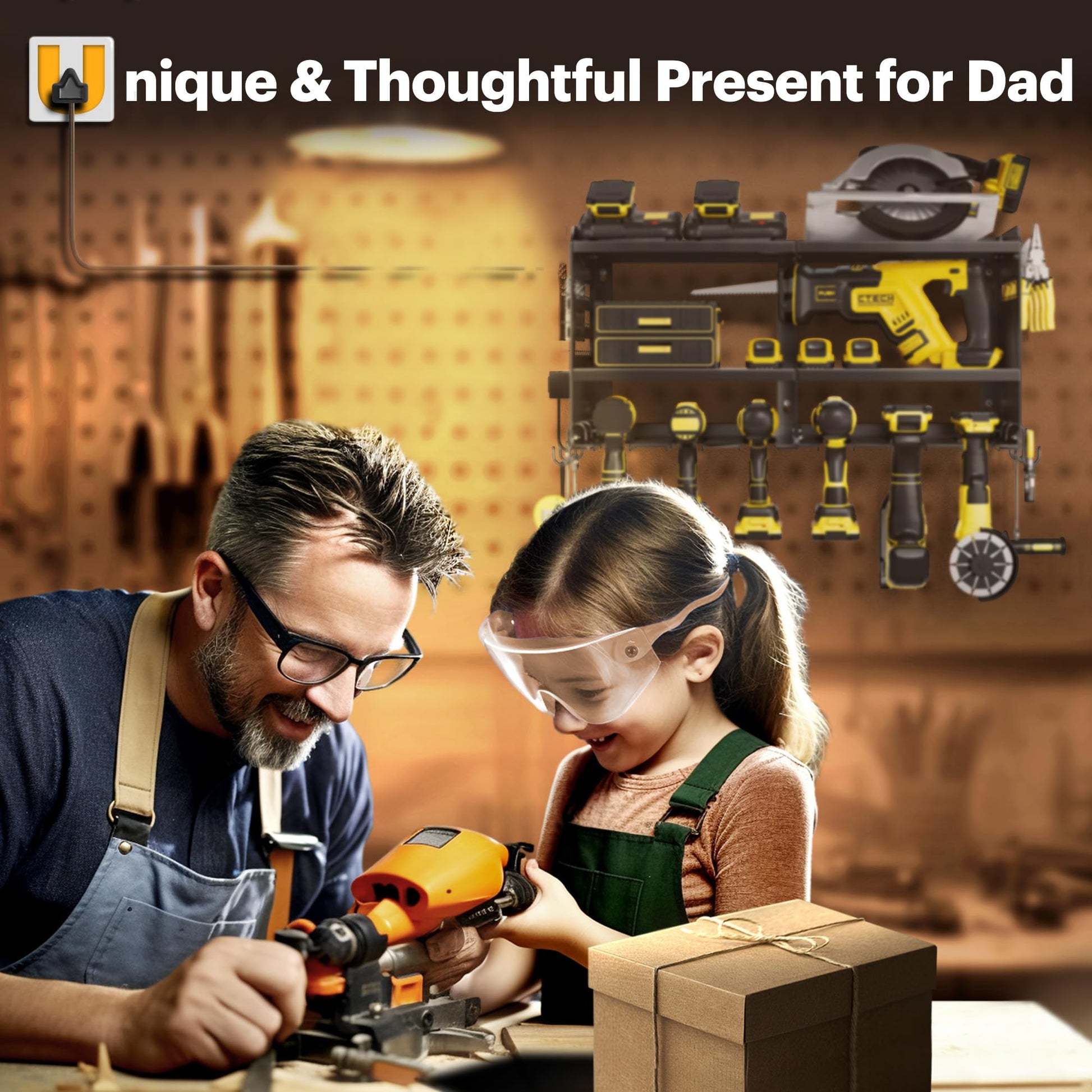 • Store 50+ Kinds of Tools: Our cordless tool organizer is suitable for both indoor and outdoor use and compatible with pegboards. You can store your charging stations, batteries, toolboxes, drill bits, hammers, and other garage tools without any extra hassle.Considerate Father's Day gift and men's gifts