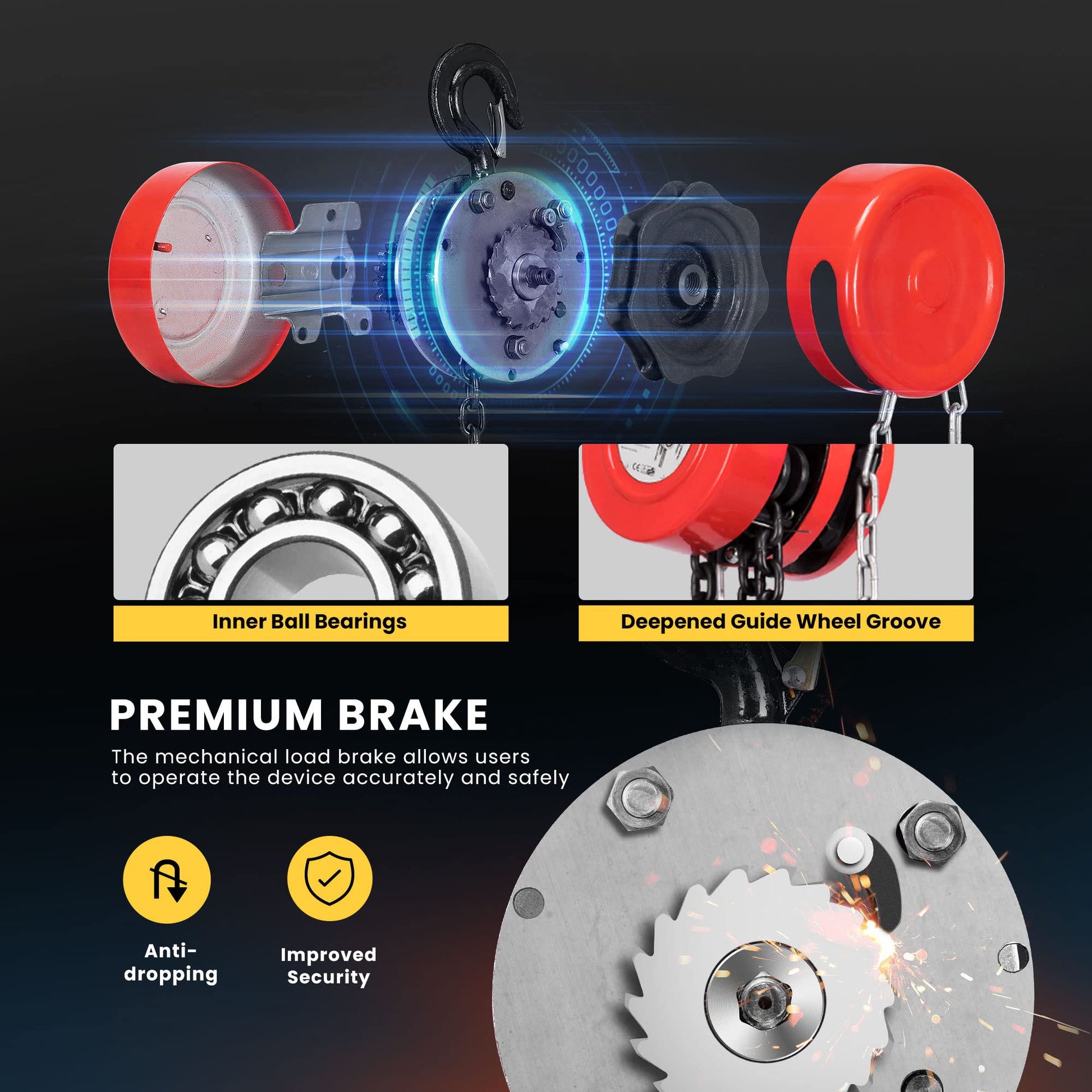 • HIGH-QUALITY BRAKE - This chain fall features a mechanical load brake that allows users to operate the device accurately and safely; Steel gears contribute to precise control and reduce the need for maintenance and repairs