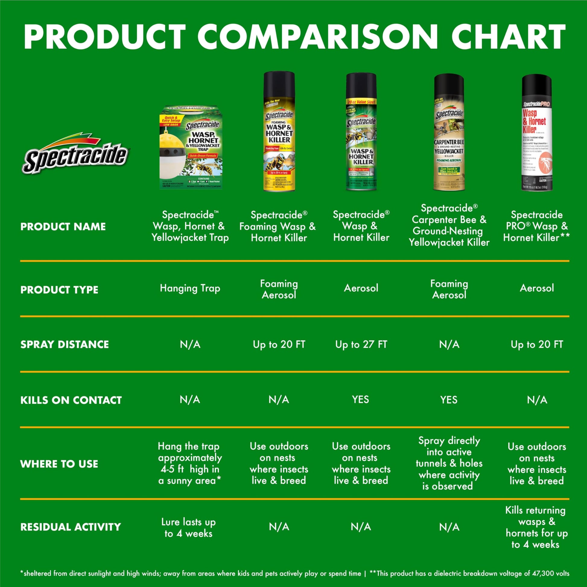 Details: Spectracide™ Wasp, Hornet, & Yellowjacket Trap contains a food-based lure with a quick-drown formula that starts working immediately to attract and trap listed outdoor pests. Once neutralized, the pests can be disposed of securely without escape. Spectracide™ Wasp, Hornet, & Yellowjacket Trap attracts outdoor pests such as wasps, hornets and yellowjackets. This sugar-based lure is made with simple food ingredients and each lure lasts up to 30 days. June – October is the best and most effective time to use this trap, as wasps look for sugar to build their nests and colony during this period. Refills available for purchase separately. Spectracide™ Wasp, Hornet, & Yellowjacket Trap requires no tools for assembly, making it quick and easy to set up. Once assembled, hang the trap approximately 4-5 ft high in a sunny area, sheltered from direct sunlight and high winds, away from areas where kids and pets actively play or spend time. Hang traps 15 ft from pest activity (if using multiple traps, place 15-30 ft apart). Do not hang traps near nests or flowering plants. Always read the entire label and follow all directions and precautions.