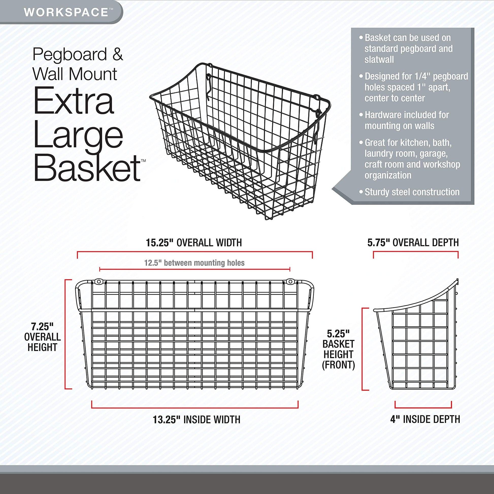 Spectrum Pegboard & Wall Mount Wire Basket Extra Large (Industrial Gray) - Storage & Organizer for Garage, Tools, Shed, Home, Work Bench, Crafts, & More