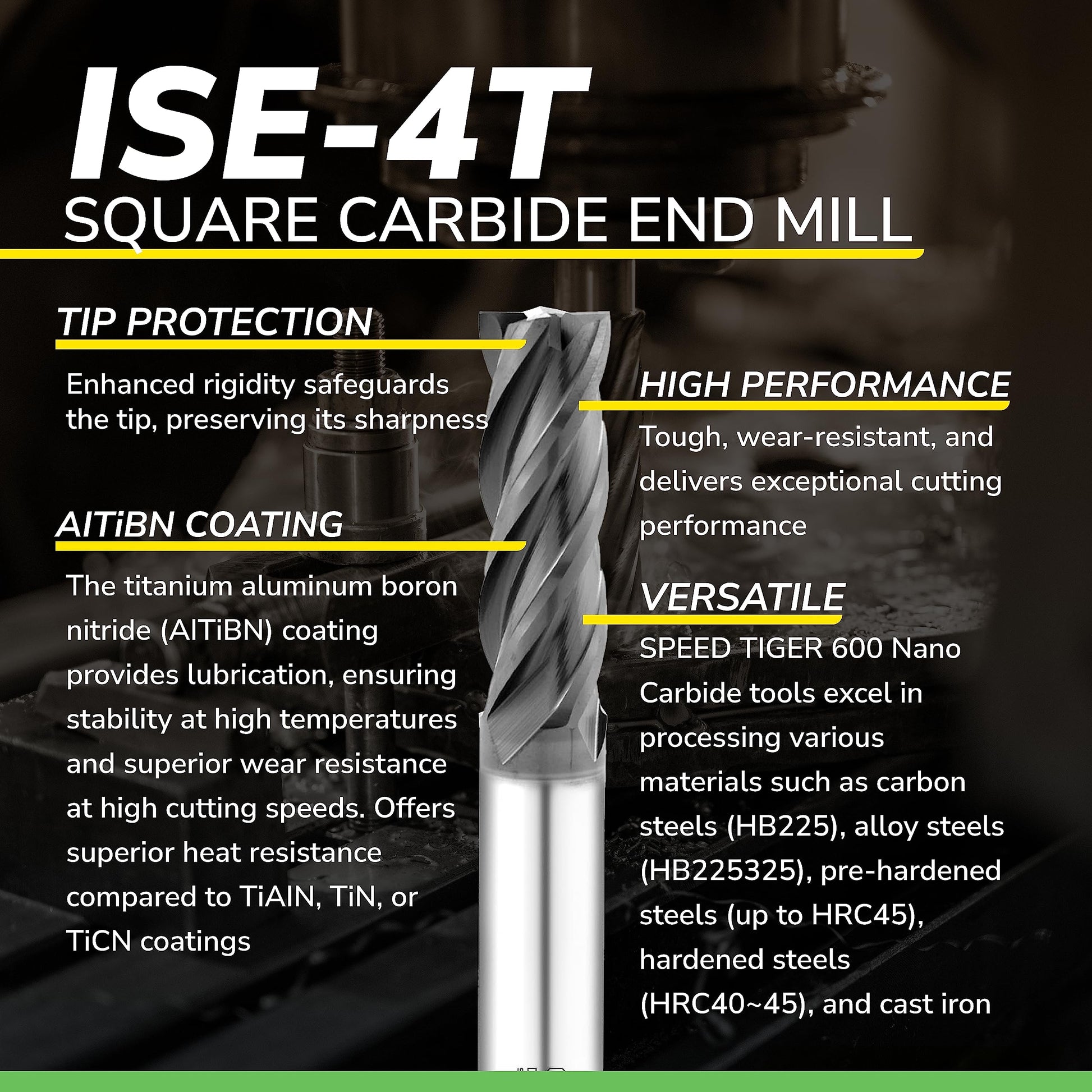 SPEED TIGER ISE Carbide End Mill 1/8” – 4 Flute, Square Nose, AlTiBN Coated, CNC Router Bit for Hardened Steel, Alloy Steel, Stainless Steel – Made in Taiwan, 5-Pack