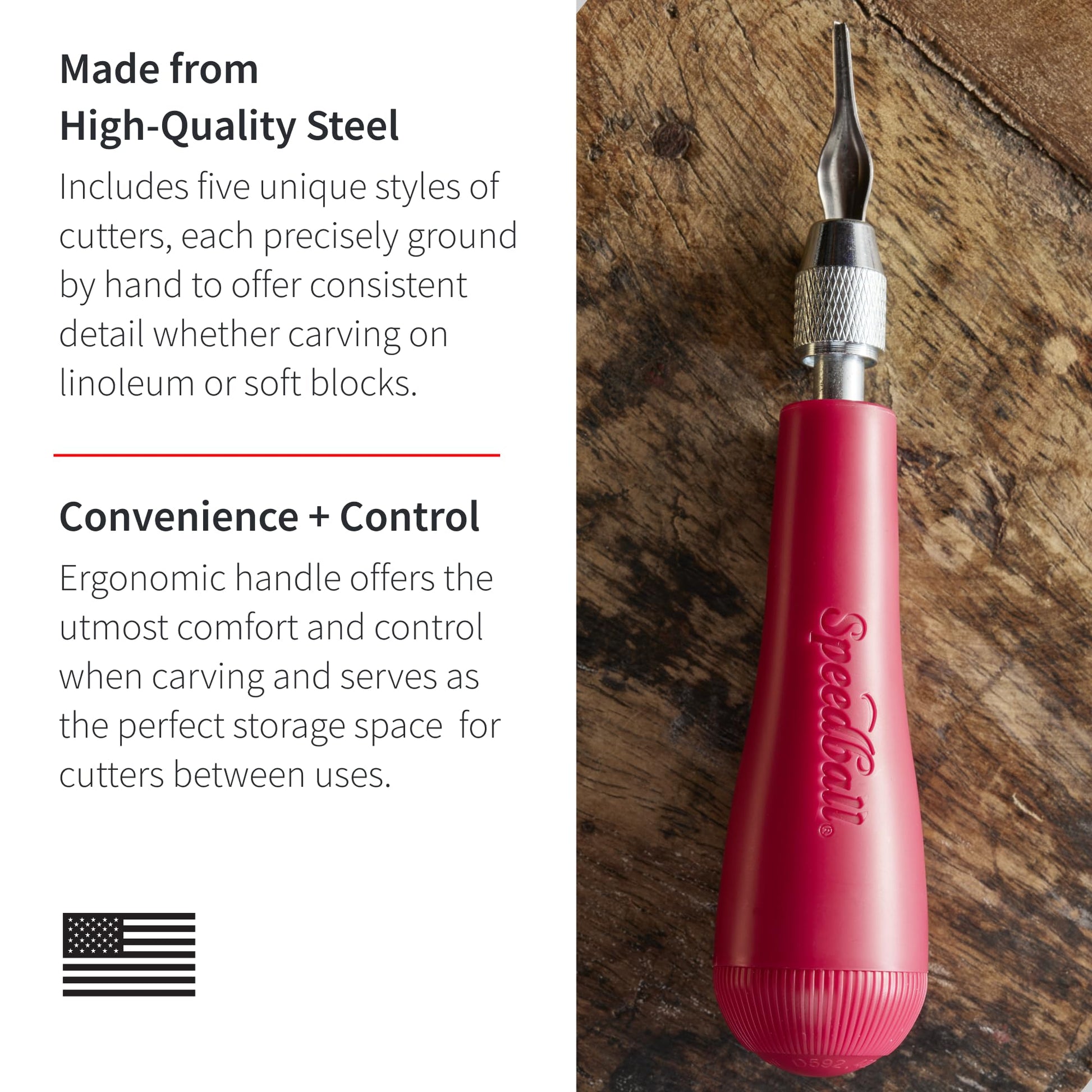 Speedball 4131 Linoleum Cutter – 5 Assorted Lino Cutters Includes Plastic Storage Handle, Made in The USA