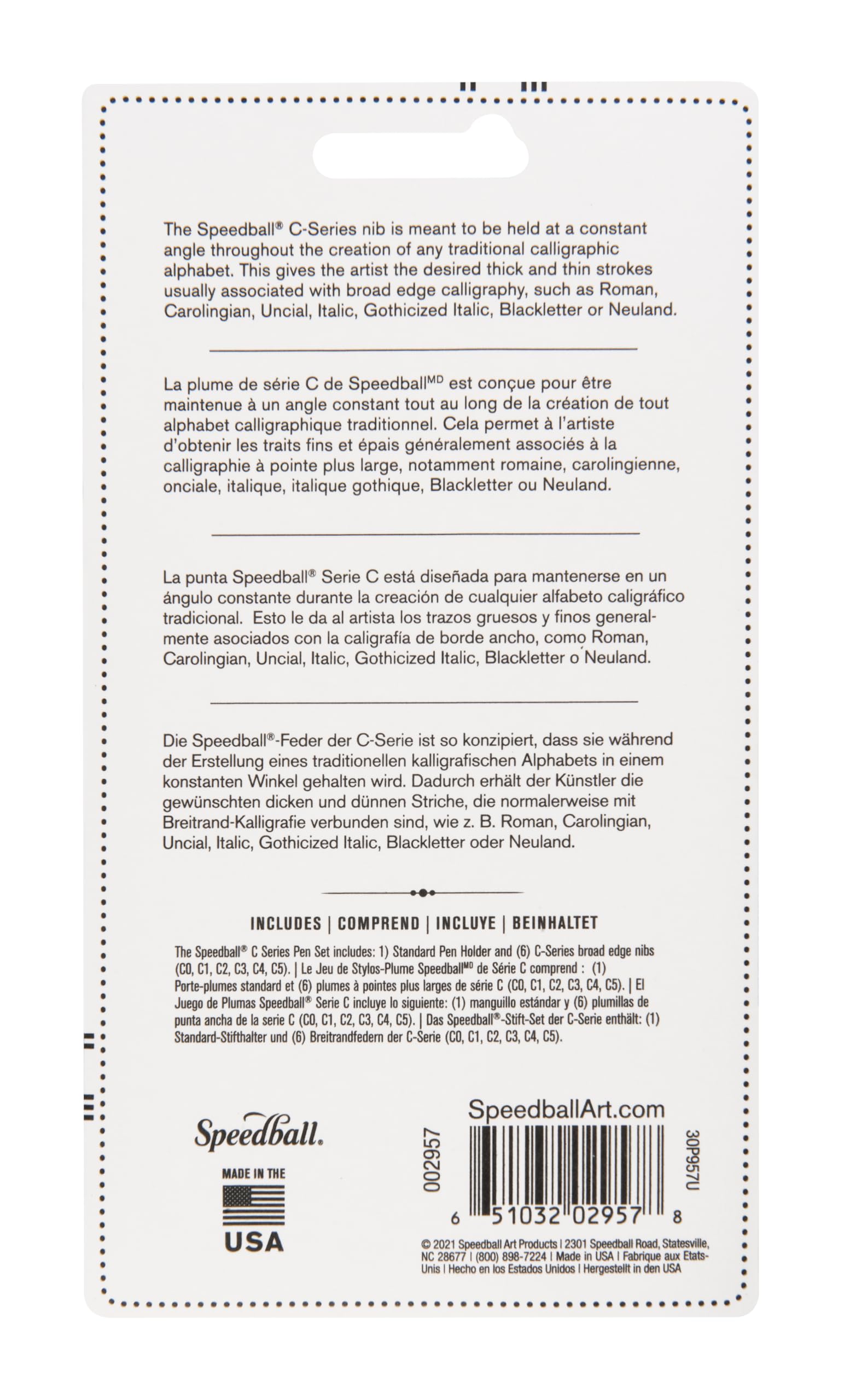 Details: The Speedball C Style Lettering Set is excellent for creating Italic or Roman Gothic alphabets, accenting line drawings, scrolls and scripts. This set contains (6) C Style Pen Nibs (C0, C1, C2, C3, C4, C5) and (1) Pen Nib Holder.