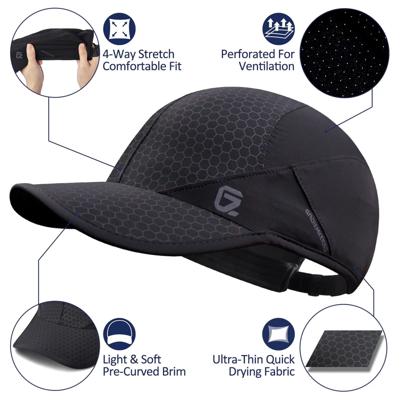 Sport Cap,Soft Brim Lightweight Running Hat Breathable Baseball Cap Quick Dry Sport Caps Cooling Portable Sun Hats for Men and Woman Performance Cloth Workouts and Outdoor Activities Black