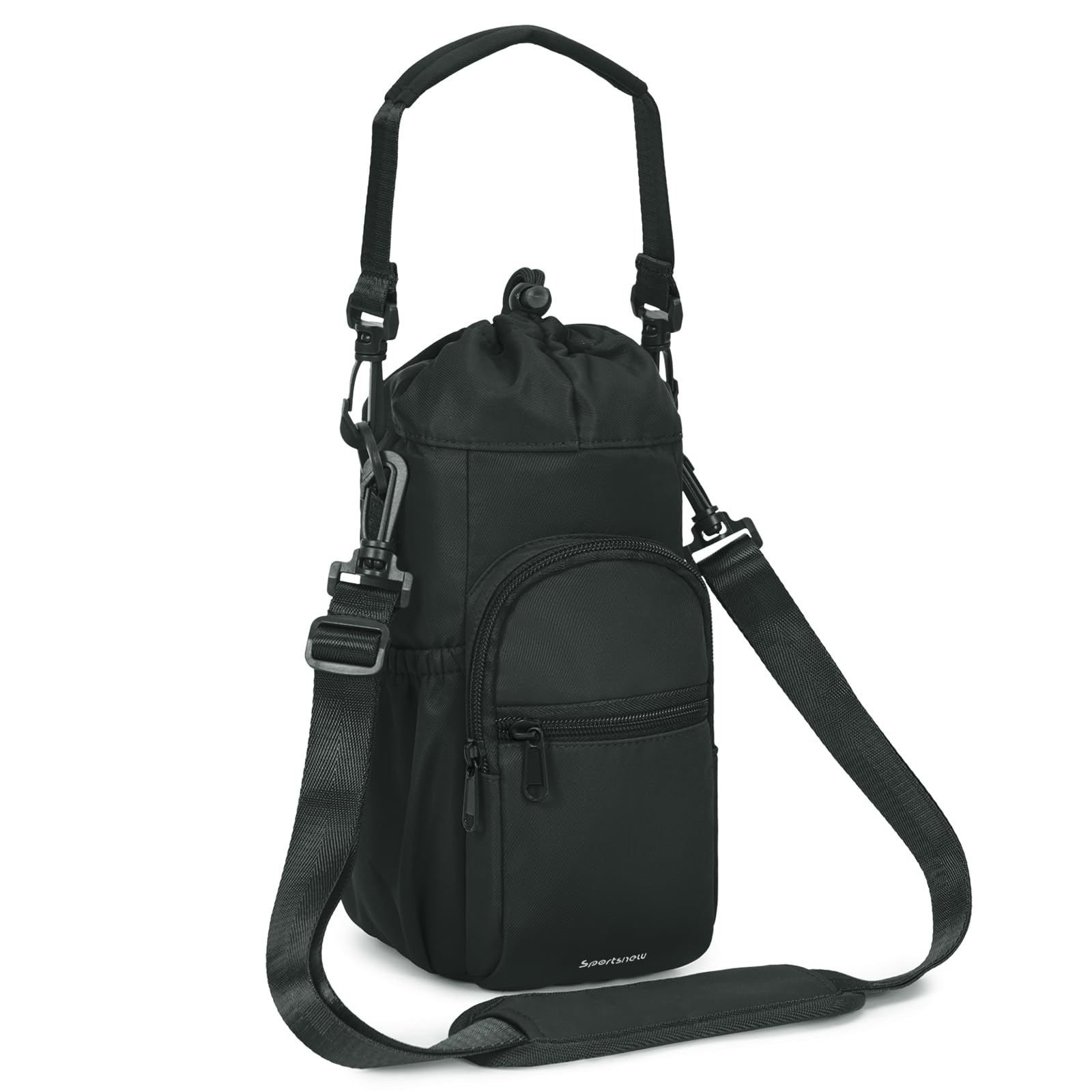 sportsnew Water Bottle Holder with Strap 32oz 40oz Insulated Water Bottle Carrier Sling Bag with Phone Pocket Tumbler Bag Cup Sleeve Crossbody Pouch for Walking Hiking Travelling, Black