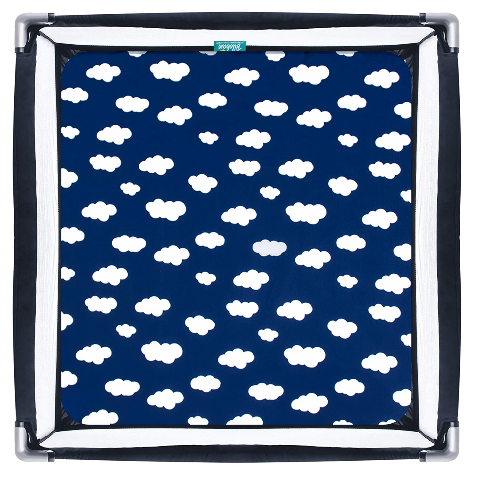 Square Playard/Playpen Fitted Sheets, Perfect for New Room2 / TotBloc Portable Playard, 2 Pack, Ultra Soft Microfiber, Fitted Playpen Sheet, Navy Cloud and Grey Arrow
