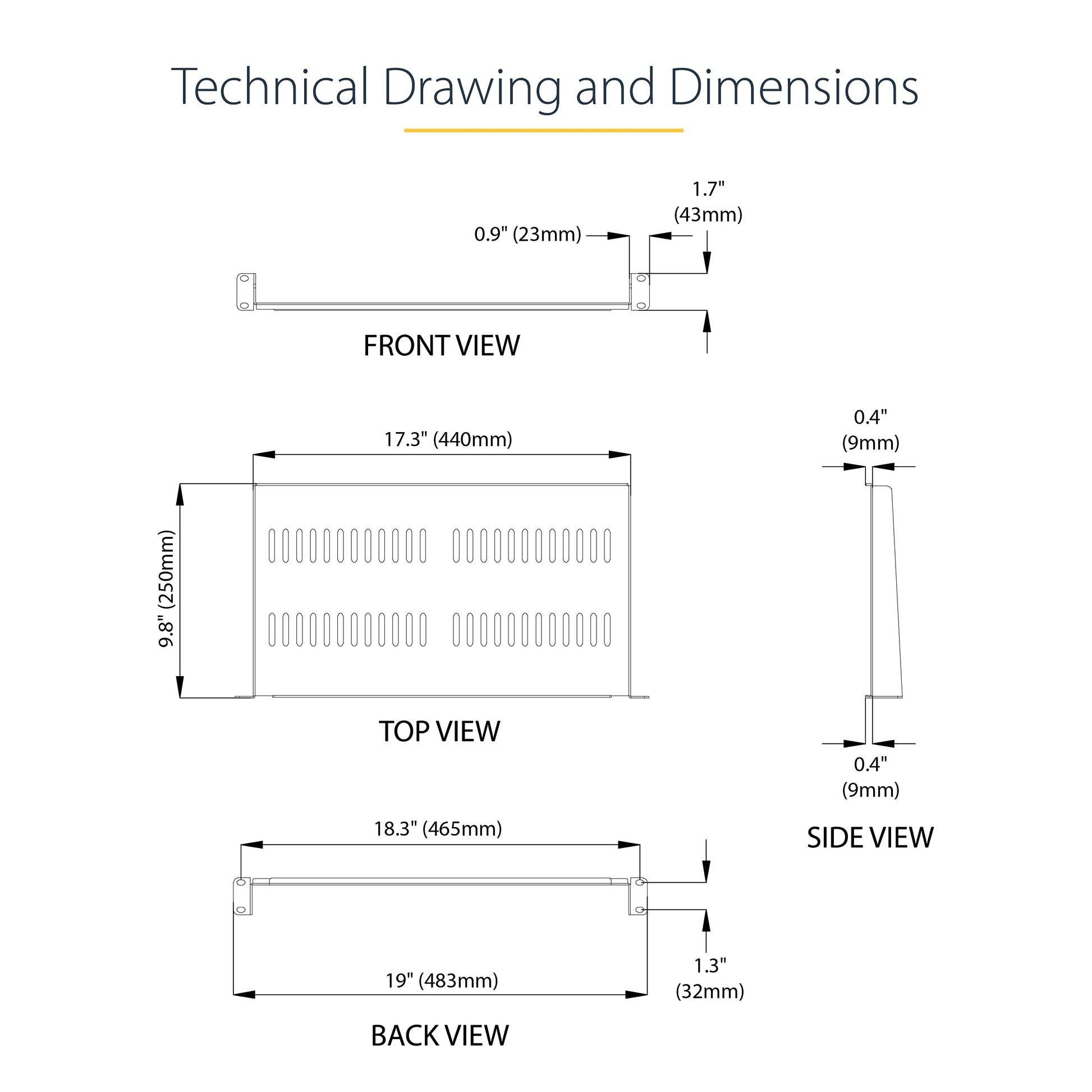 UNIVERSAL 19'' FIT: This 1U vented server rack mount shelf is designed to fit virtually any 19in server rack and can accommodate an internal depth of 10in (25cm) for your data, IT, networking, or other non-rack mount equipment