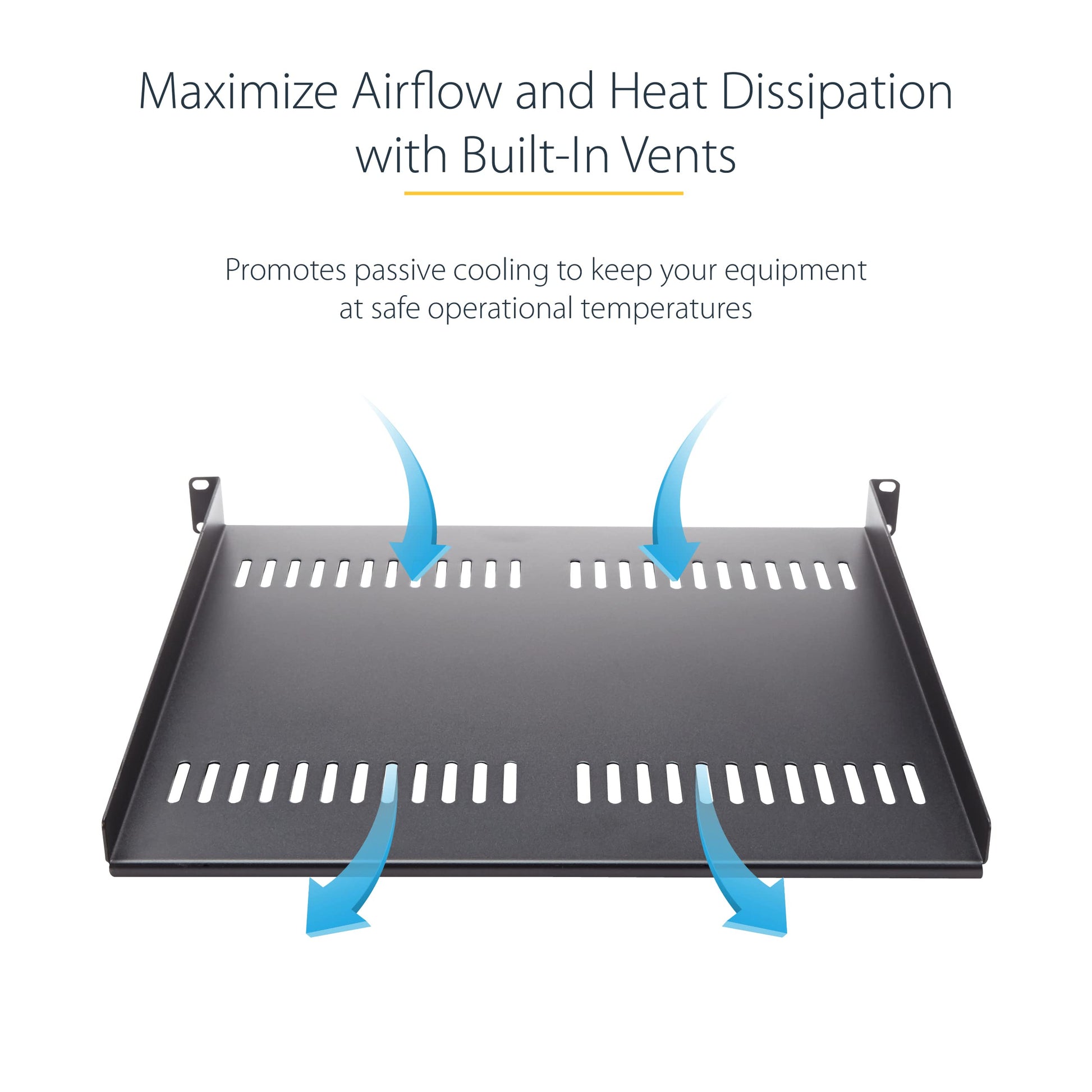 • MAXIMIZE VENTILIATION: The vented shelf plate on the cantilever rack shelf ensures consistent airflow to effectively dissipate heat on servers; it also works great to keep your computer and AV equipment cool in your home, studio, or office space