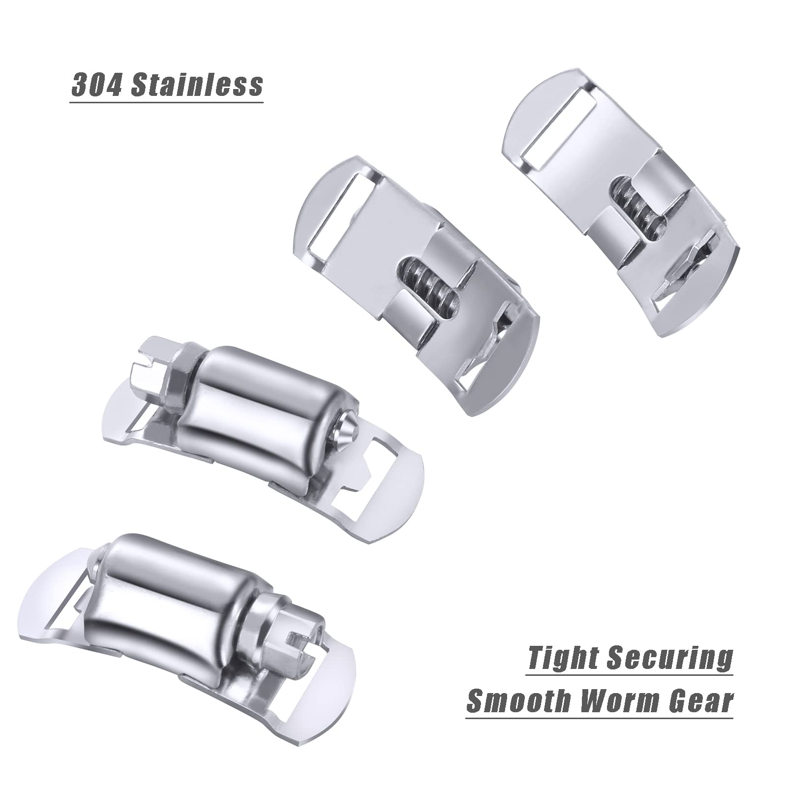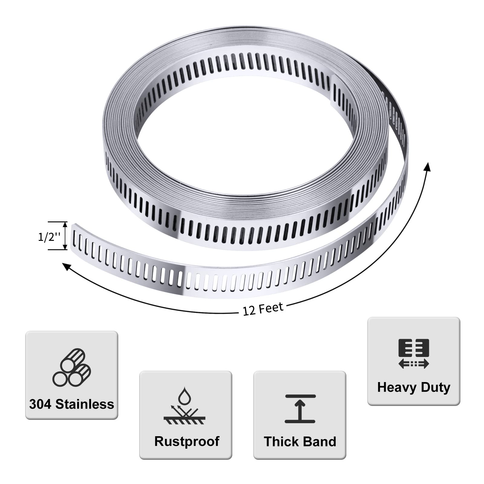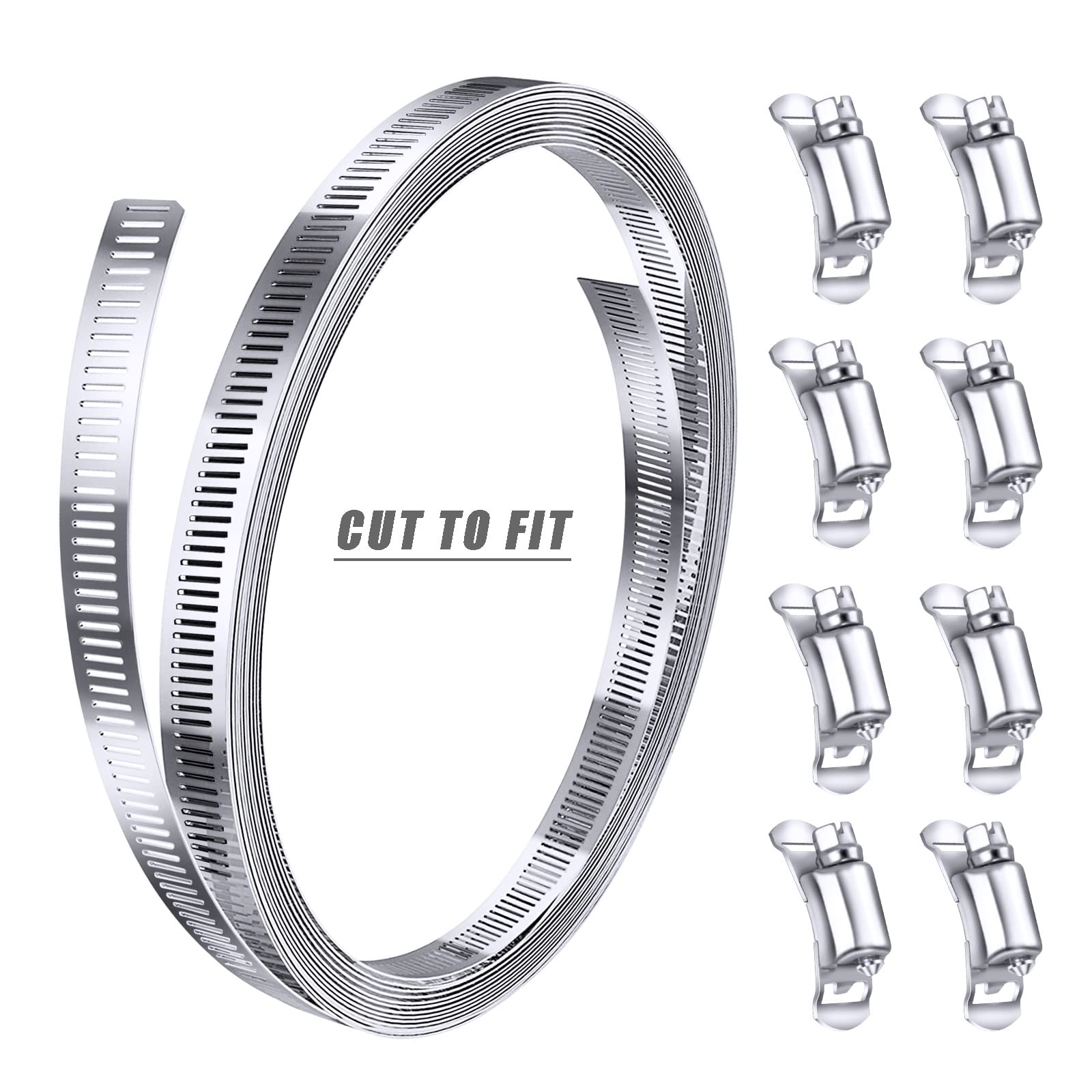 Hose Clamps Stainless Steel: 12 FT strap and 8 PCS fasteners are all made of high quality 304 stainless steel, NOT 201 SS. These worm gear clamps will last forever, reusable, anti-rust and anti-corrosive, very suitable for outdoor use!