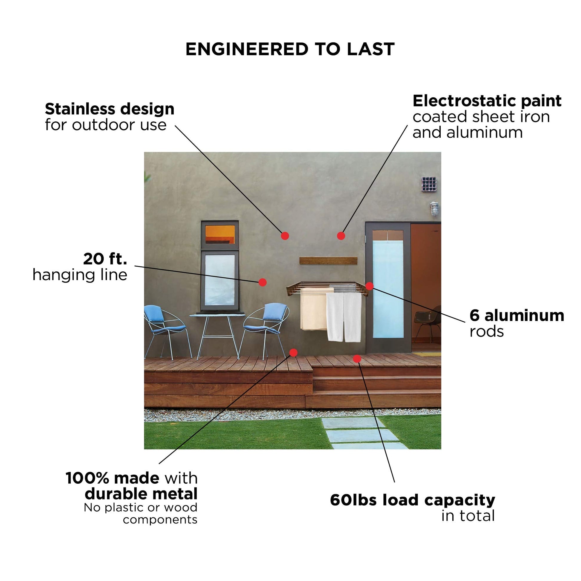 • LARGE DRYING SPACE & HEAVY WEIGHT CAPACITY: Our foldable laundry drying rack features 6 heavy-duty aluminum rods with 20 feet of linear hanging line and can hold up to 60 lbs weight.