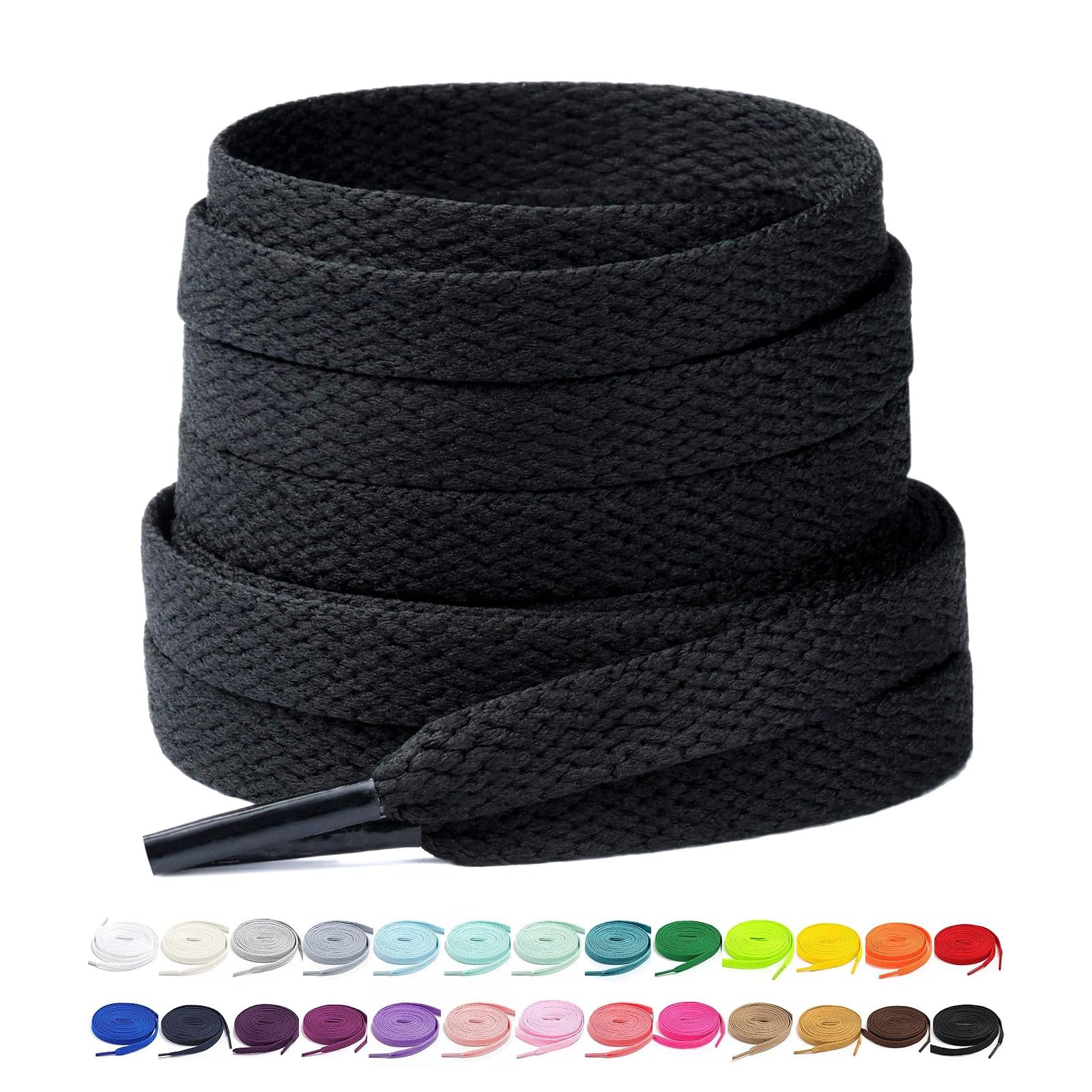 Stepace [2 Pairs Flat Shoe Laces for Sneakers 5/16" Width 30"-72" Length 26 Color Shoelaces Black 45"(114 cm)