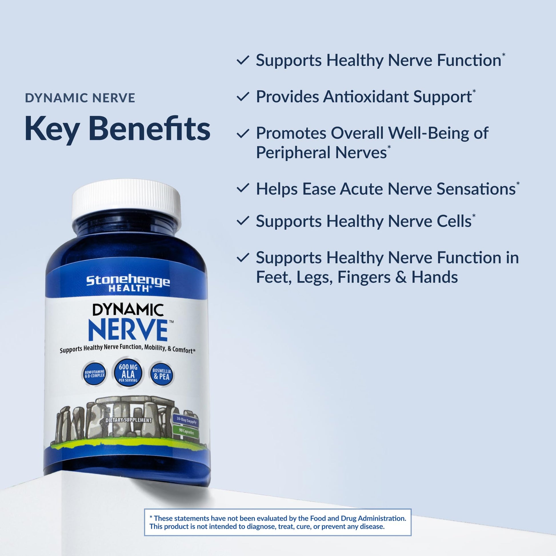 Stonehenge Health Dynamic Nerve Supplement - Supports Nerve Function in Fingers, Toes, Hands, and Feet with Alpha Lipoic Acid ALA, Benfotiamine, Pea, Robust B Complex, Boswellia