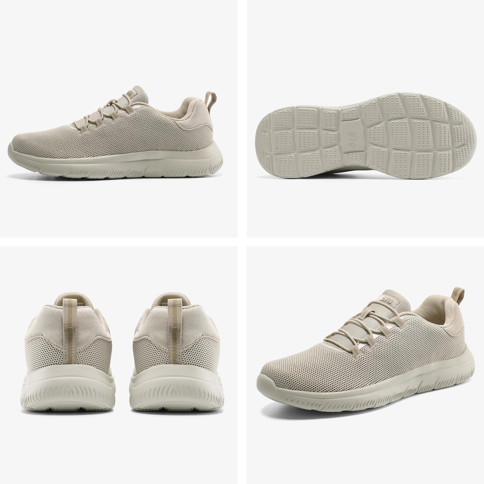 STQ Tennis Shoes for Women Athletic Cushioning Memory Foam Walking Shoes Slip on Mesh Sneakers Light Taupe US 8