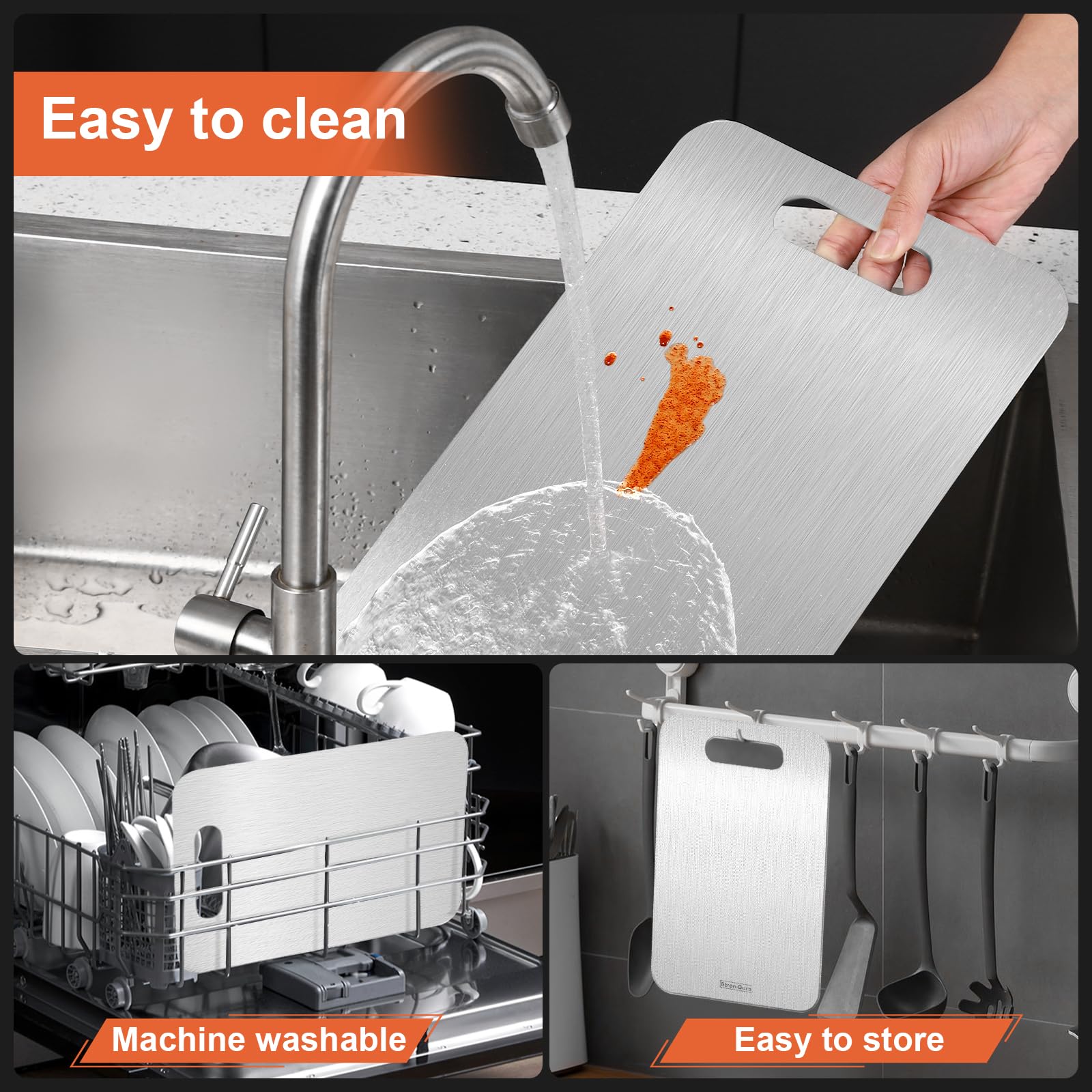 • 【Food Safe】This Cutting Board is made of food grade stainless steel which won't get rusty and moldy, pretty good for your health.