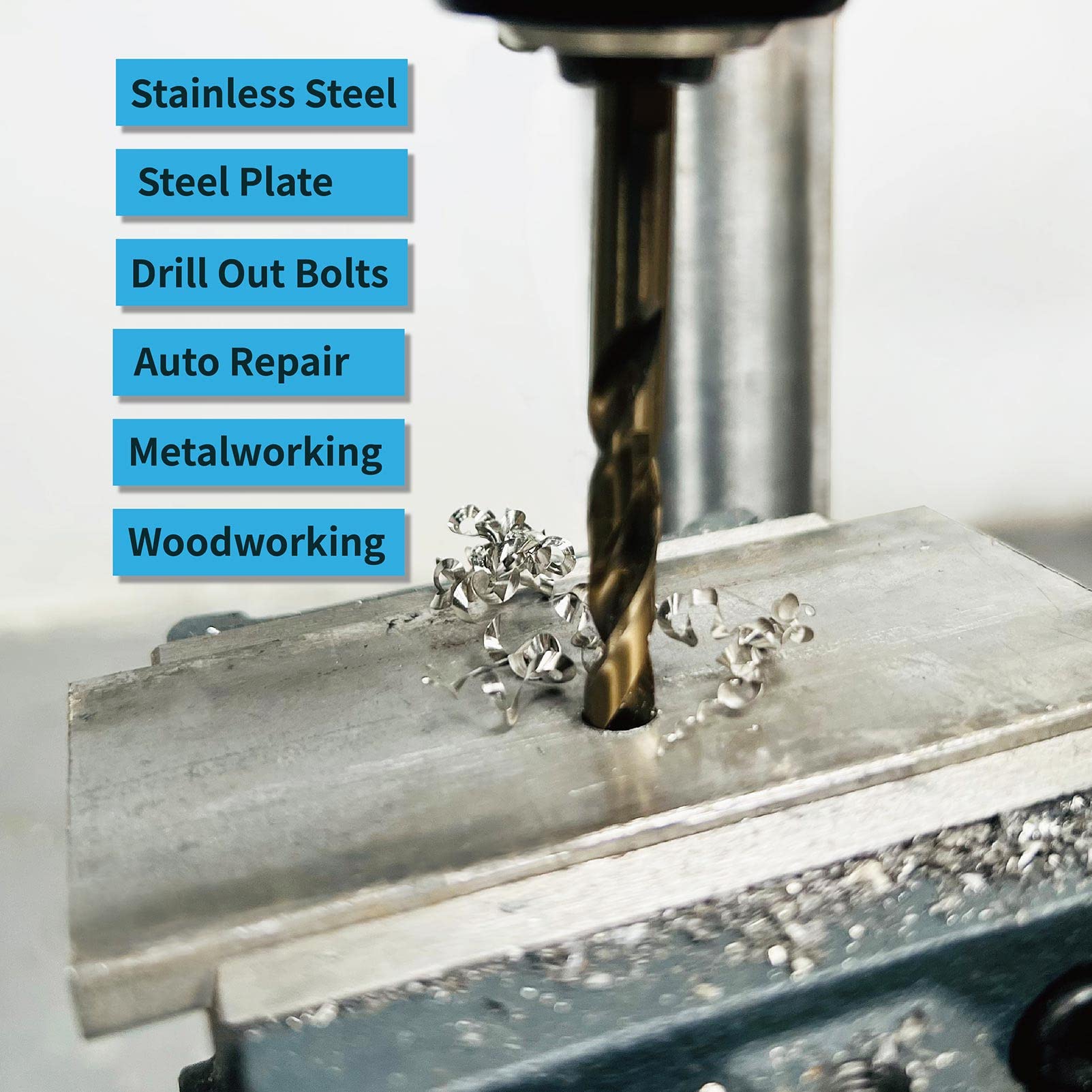 • 【3X Efficiency + 3X Tool Life】- This Cobalt High Speed Steel Drill Bits Set is Typically Capable of Running 3 Times Faster. Despite the Higher Price,the Cost Per Hole When Using Cobalt Drill Bit Will be the Lowest,Since It Can Produce So Many More Holes.