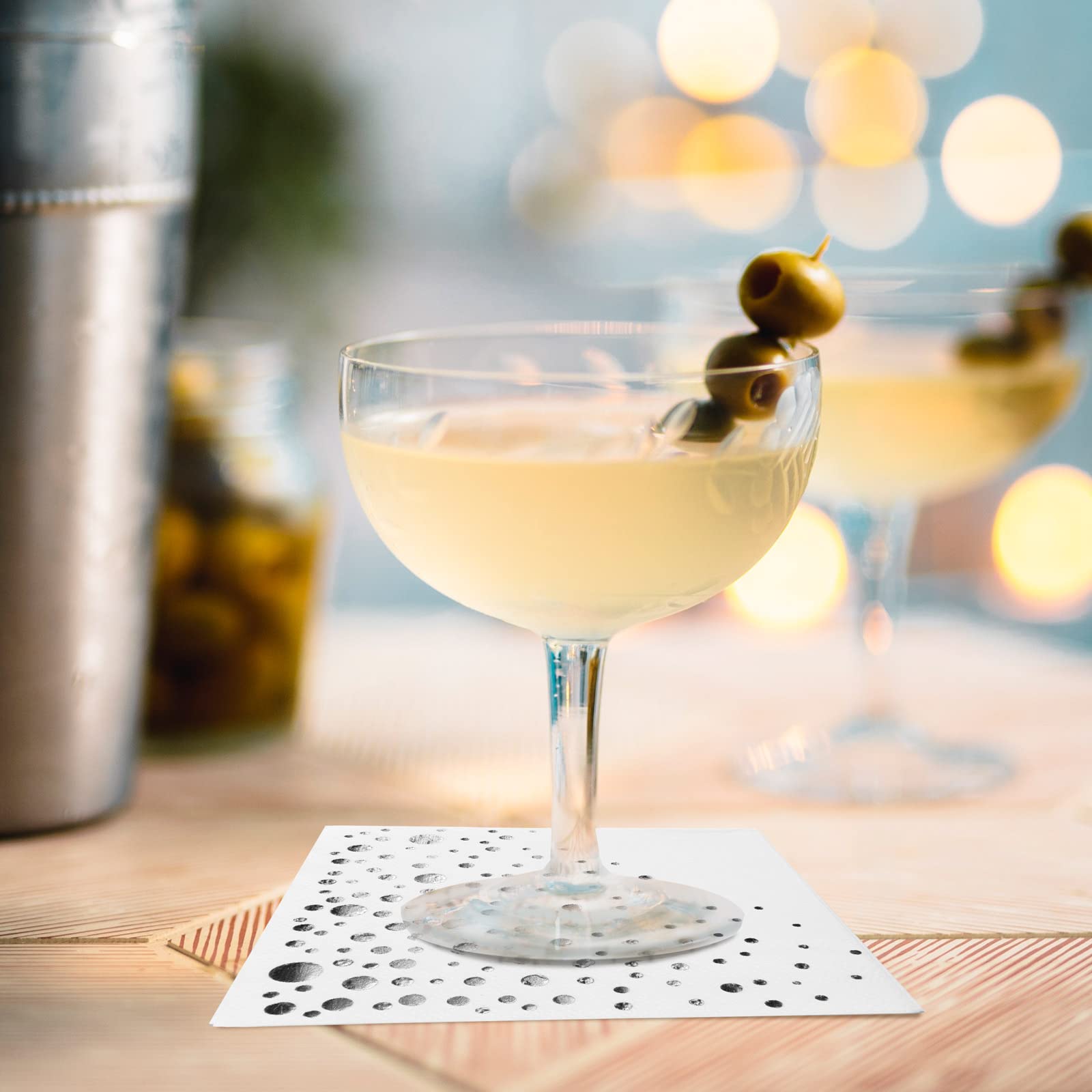 • So Pretty You Won't Want to get them Dirty! Beautifully designed - the perfect shade of silver adds a special touch of glamor to these white cocktail napkins. This unique design and versatile shade will match any party theme