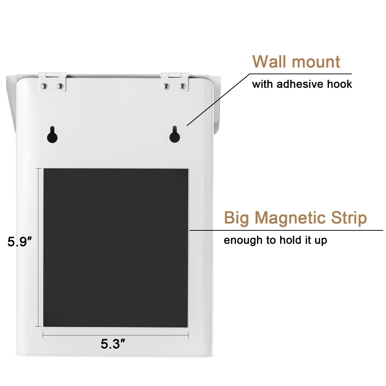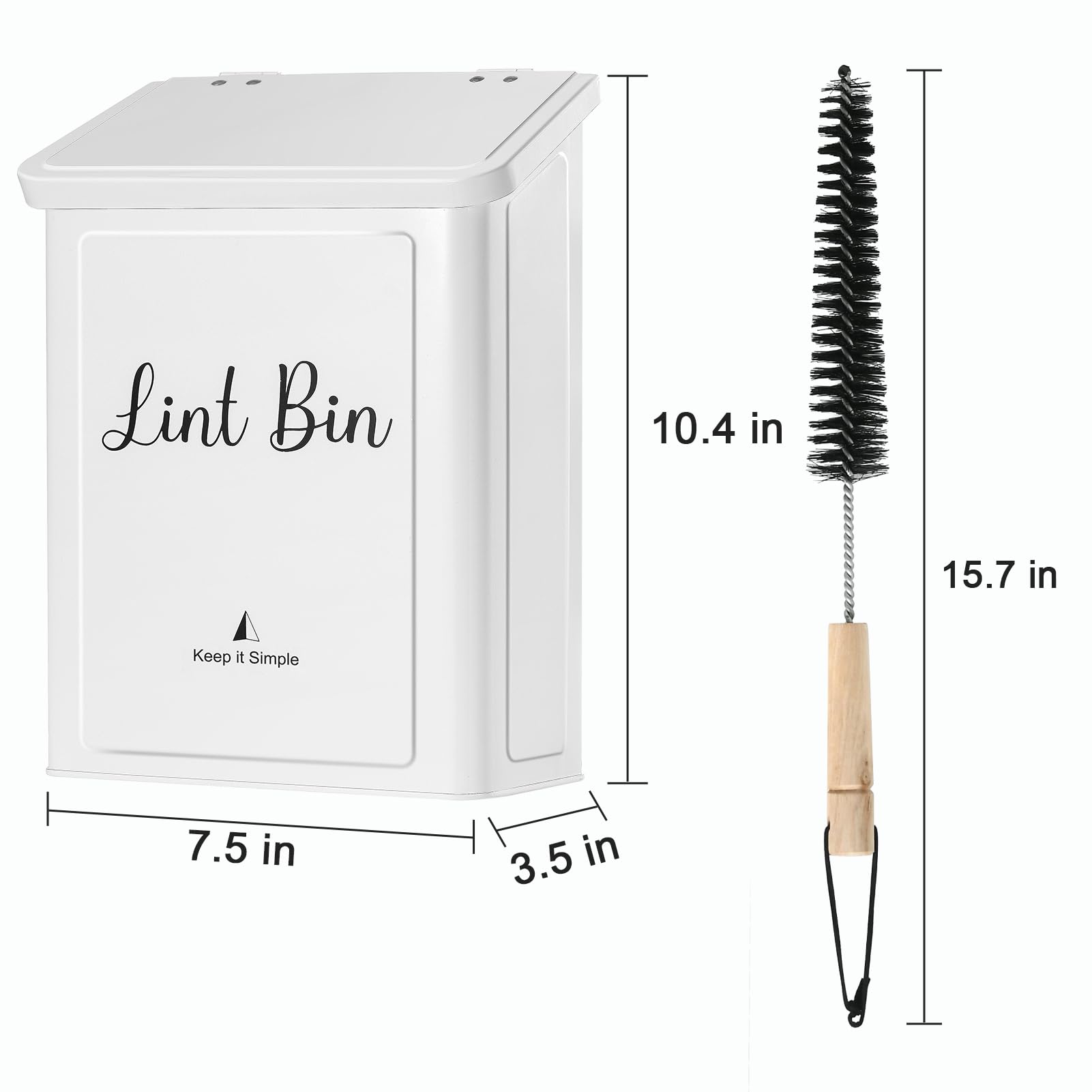 SUBEKYU Magnetic Lint Bin for Laundry Room, Wall Mounted Metal Lint Box Holder Trash Can with Lid for Dryer,Lint Basket for Laundry Room Organization,White