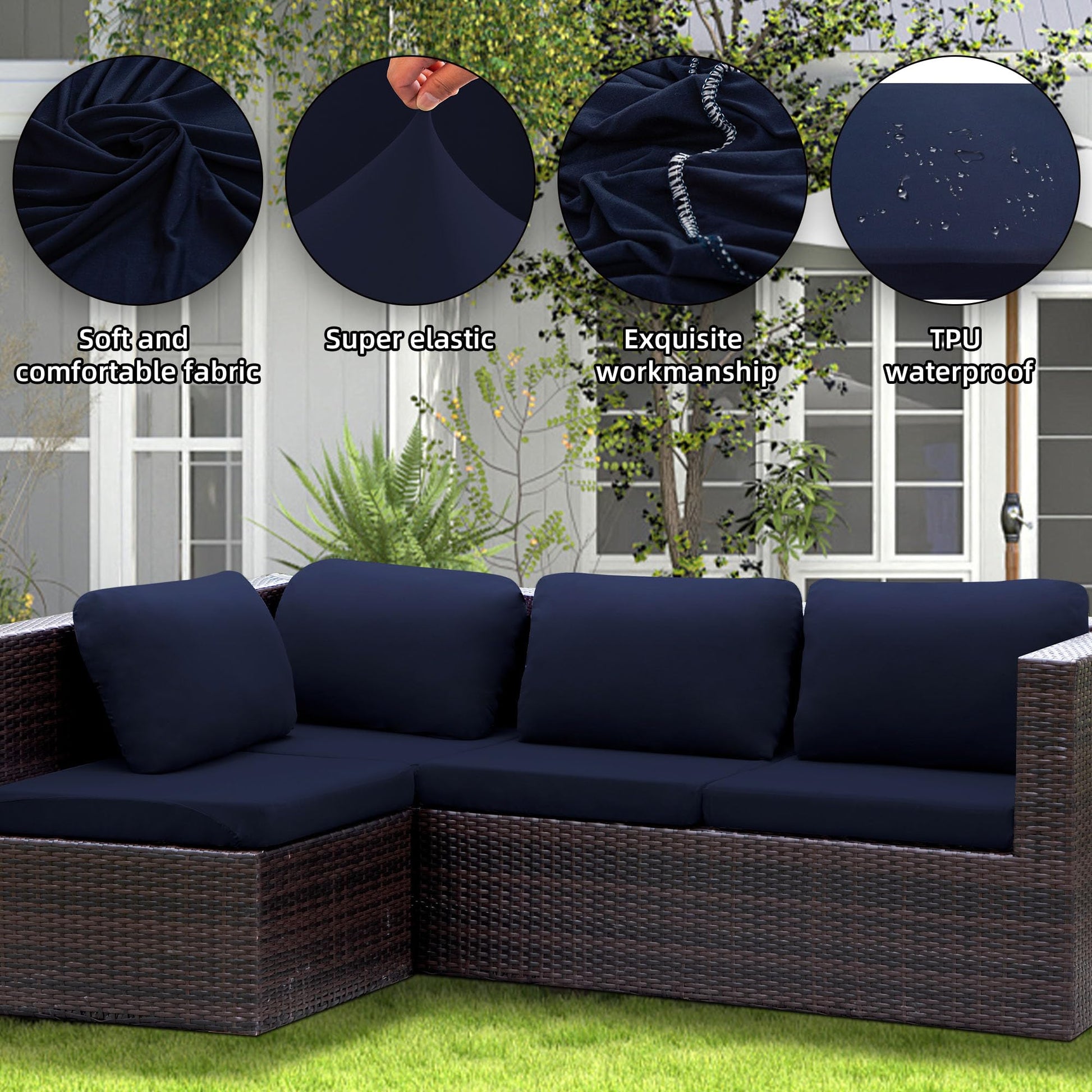 SUKAIKEQA 14Pcs Patio Cushion Covers Waterproof, Cushion Covers, Stretch Couch Covers, Patio Couch Slipcovers, Patio Cushion Covers Replacement, Outdoor Chair Cushion Covers (Navy Blue)