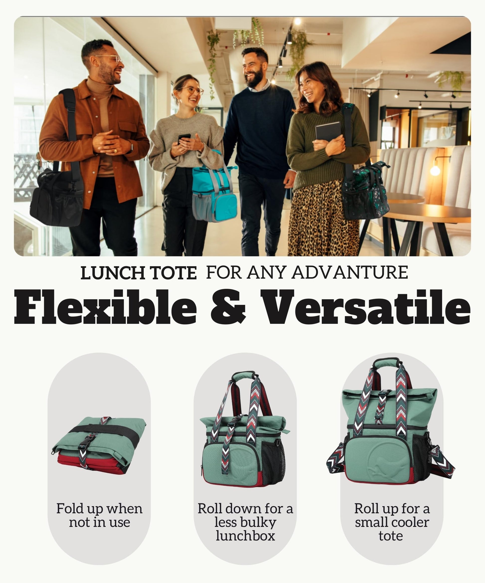 • Large Capacity - Measuring 9.5”L x 7”W x 15”H, this lunch bag happily holds up to 16 soda cans (330ml) or four 1-liter lunch containers (up to 7.9'L x 6'W x 3'H, not included), with bonus space for your favorite snacks or fruits! It's great for big appetites, long shifts at work, picnics, beach days, family trips, or road adventures.