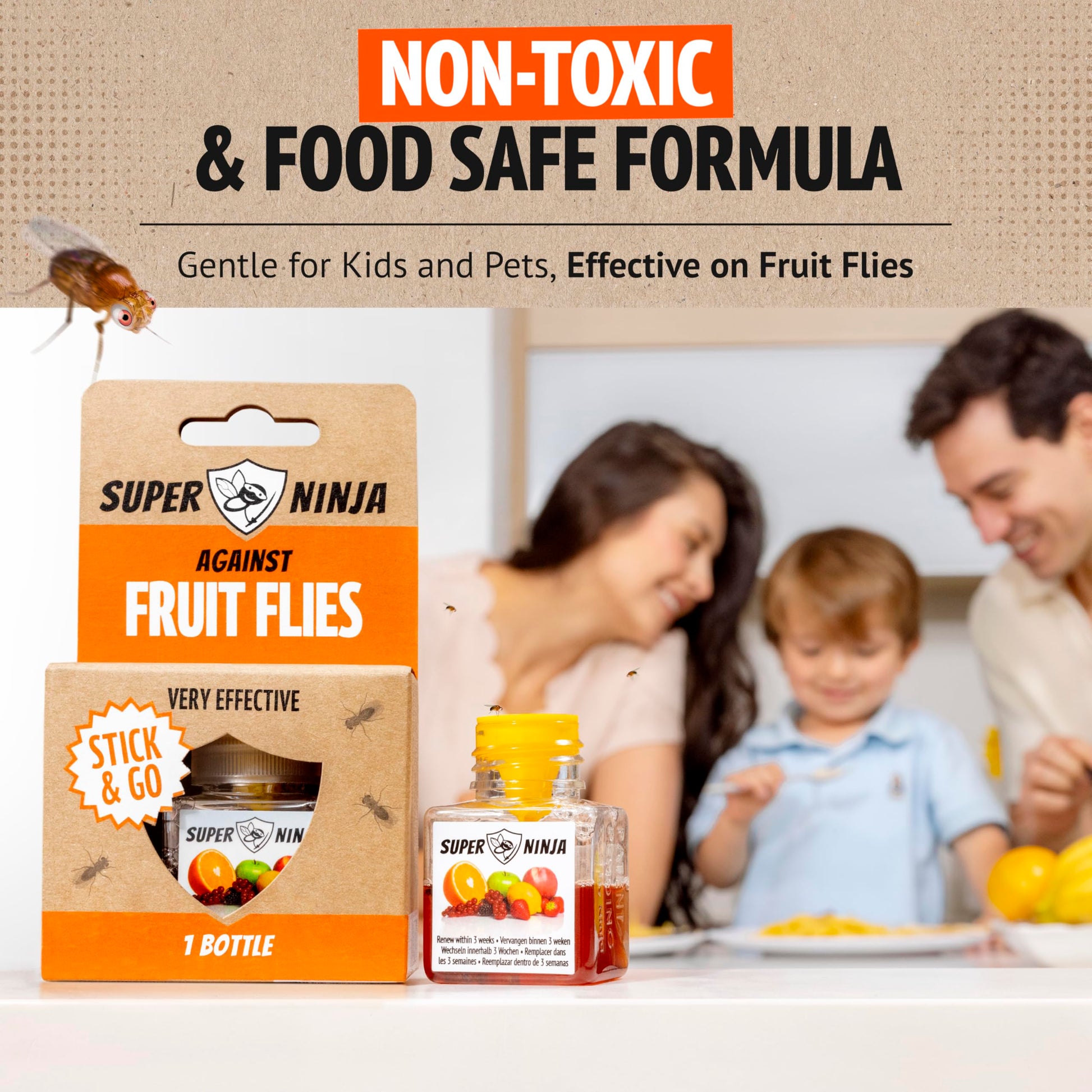 Super Ninja Fruit Fly Traps for Indoors - 1 Pack, Highly Effective Fruit Fly Catcher for Indoor Use for Home & Kitchen, Up to 3 Weeks of Performance per Bottle, Kid & Pet Friendly