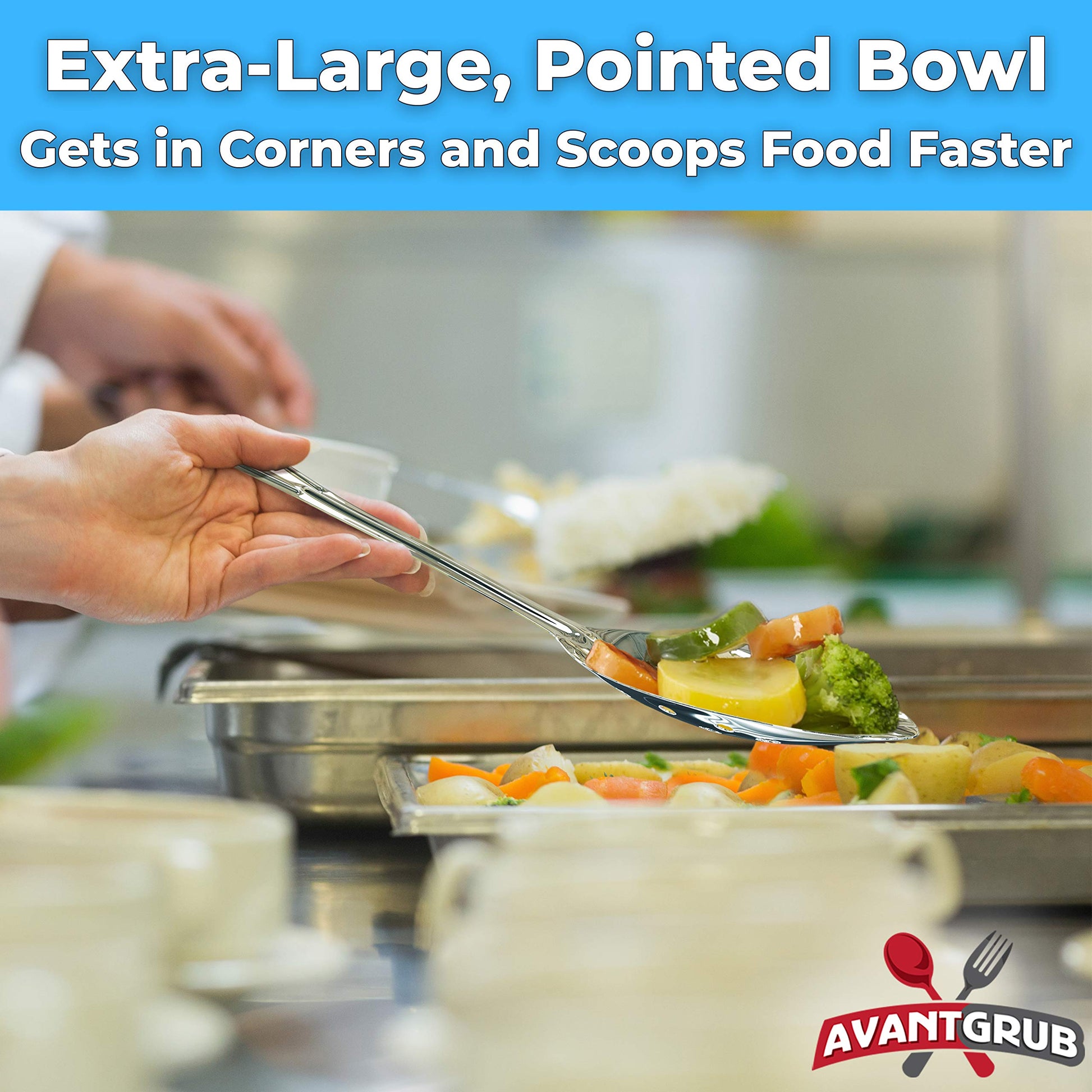 SUPER VERSATILE = A GREAT TOOL FROM KITCHEN TO TABLE. These long, spoons are made for high-volume applications. Prepping, cooking or serving food, they're an ideal accessory for buffet lines, catered events or family-style dining.