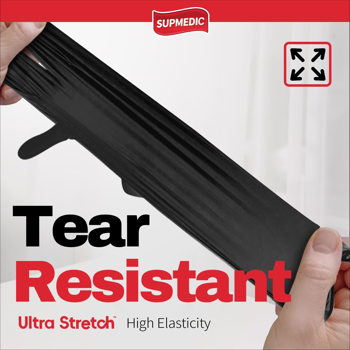 Supmedic Black Nitrile Exam Gloves, 5 Mil Chemical Resistant Powder-Free Food Safe Disposable Medical Glove 100Pcs (Large)