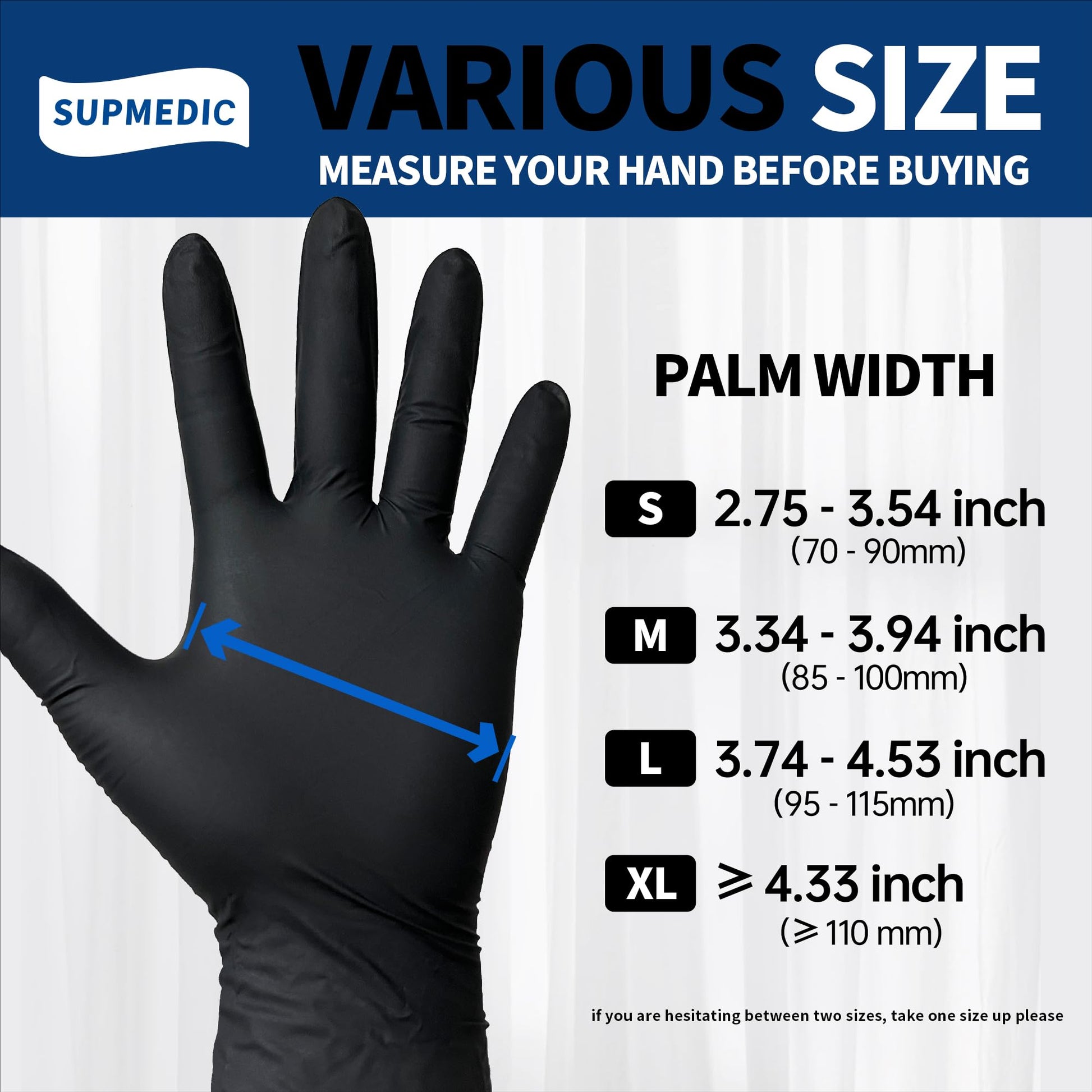 Supmedic Disposable Nitrile Gloves, Chemical Resistant, Powder-Free, Latex-Free, Food Safe, Medical Exam Gloves, Black, Large, 100 Pcs