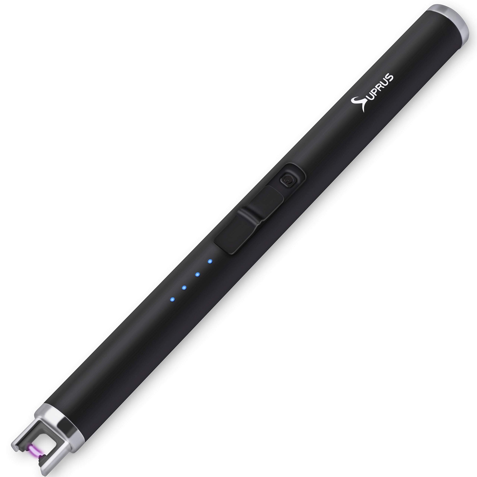 • 【BATTERY NOTIFICATION】This is the upgraded SUPRUS arc lighter which can display real time battery volume. When 4 LED lights on the barrel turn on, it is full charged.