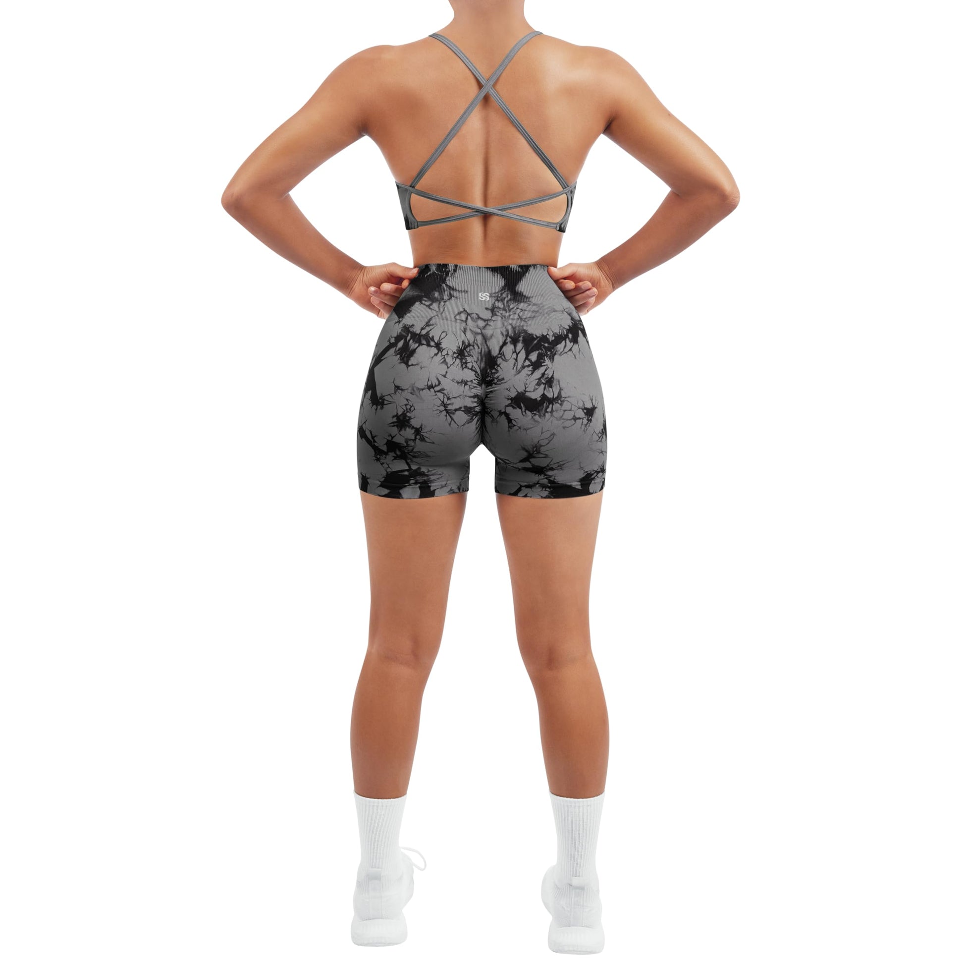 SUUKSESS Women Seamless 2 piece Workout Sets Strappy Padded Sports Bra Booty High Waisted Shorts Outfits (Black Grey,L)