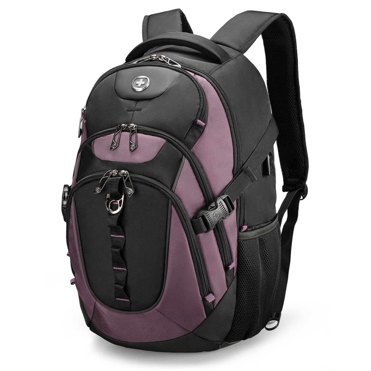 Swissdigital Design Laptop Backpack with USB Charging Port, TSA Travel Backpack Fits 15.6 inches Computer, 31L College School Backpack for Women, Light Purple/Black | SD803