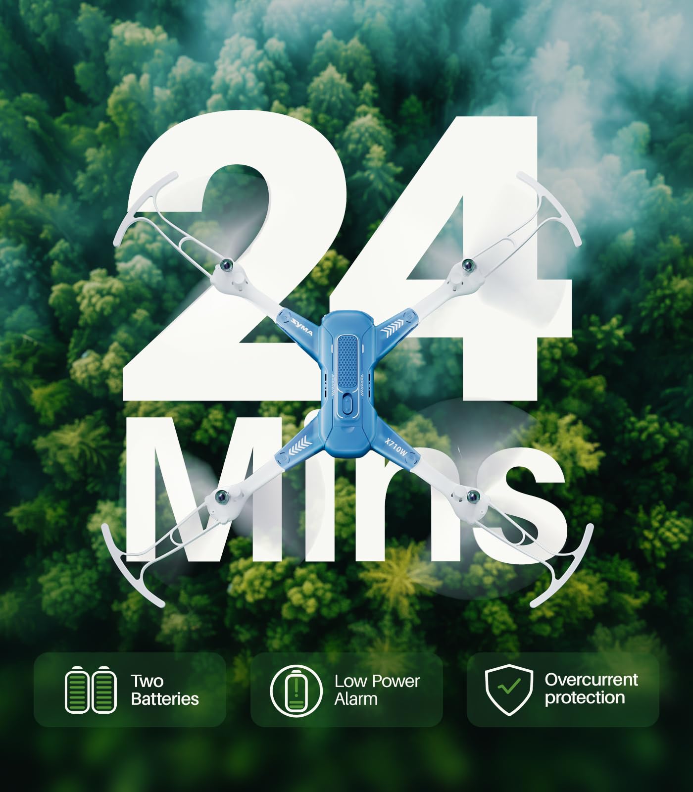 • Extended Flight, Safe Charging: Equipped with two batteries, our mini drone with camera offers up to 24 minutes of flight time. Enjoy hassle-free charging with its modular design. Plus, benefit from low-voltage and over-current protection for battery longevity