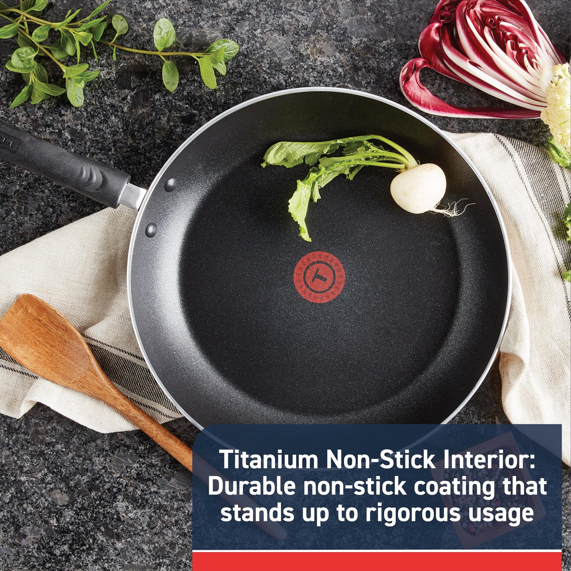 The unique T-fal Thermo-spot heat indicator shows when T-fal pan is perfectly preheated for cooking