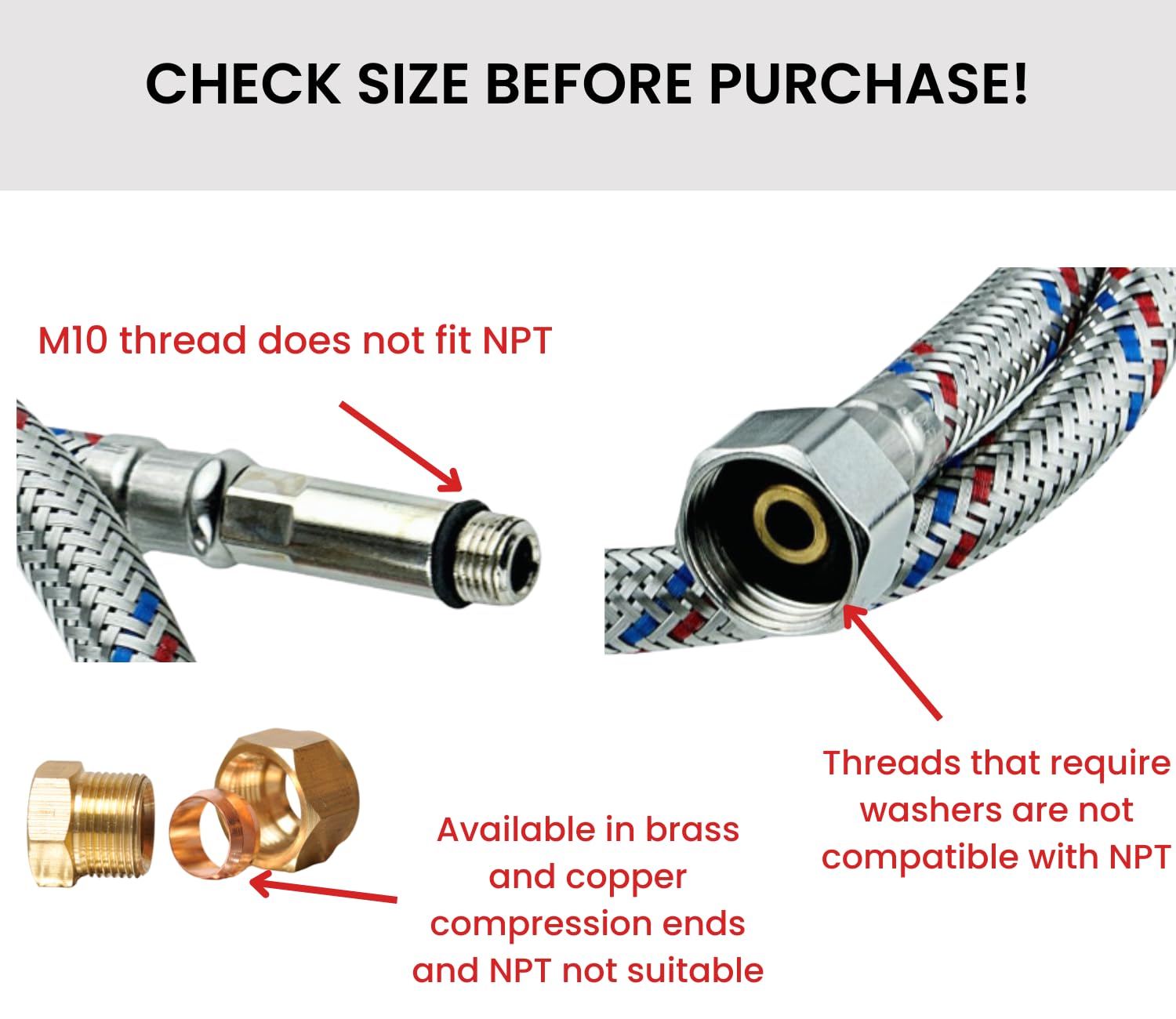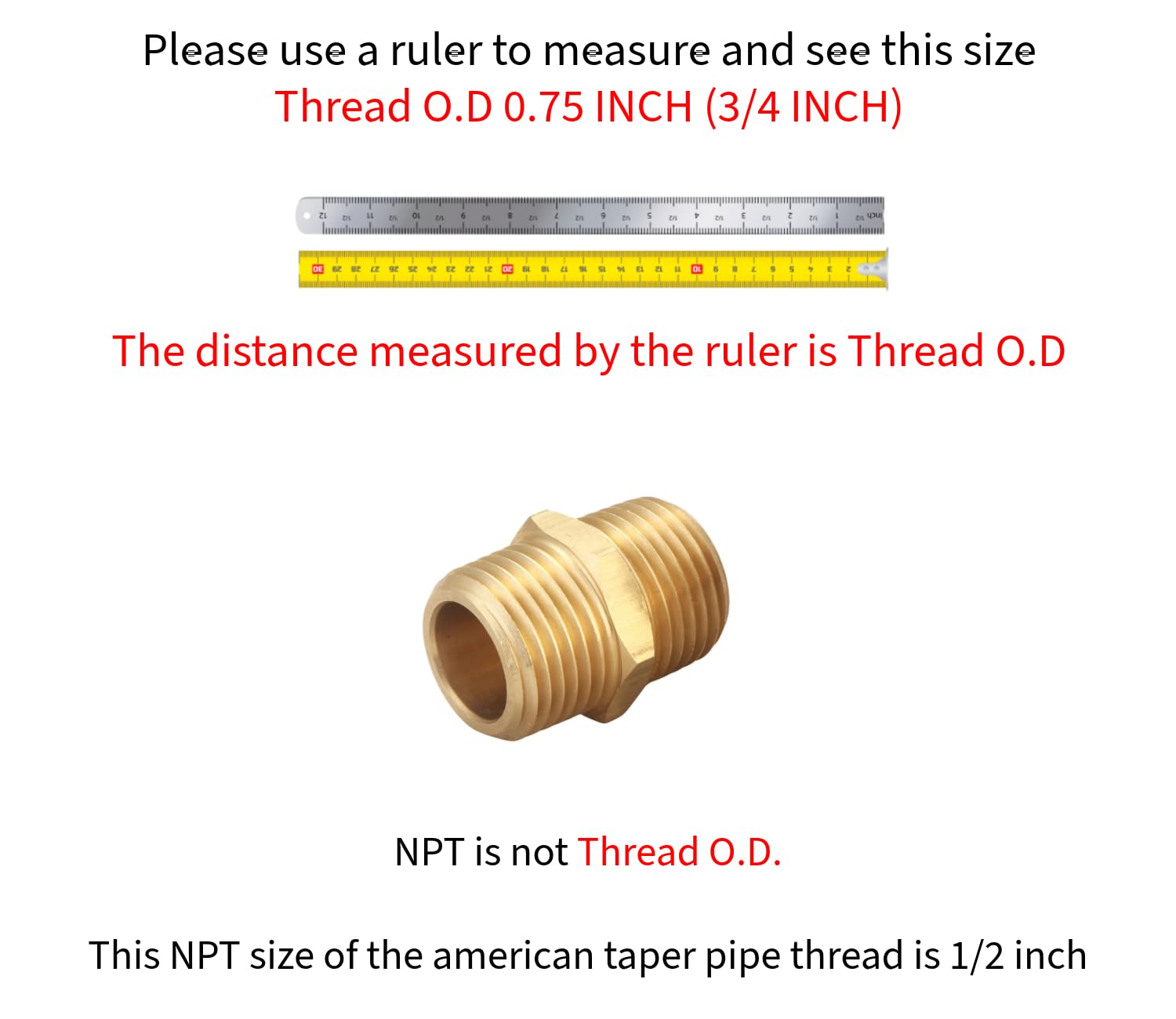• NPT Thread Size & Fitment: Fits standard 1/2' NPT Male to 1/2' NPT Male hex nipple adapter threads. NPT is a nominal pipe size, not actual diameter. Approx. 0.75' OD × 0.75' OD. Please confirm size before ordering. Not compatible with compression fittings.