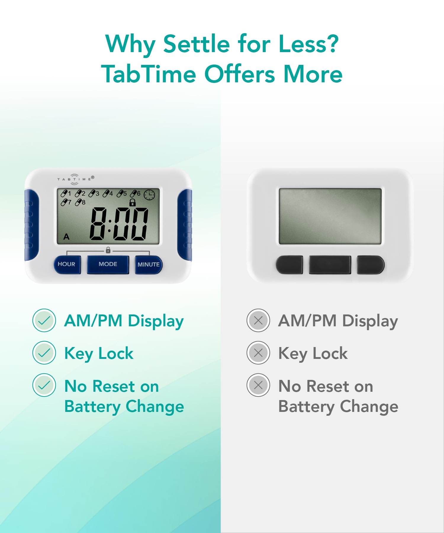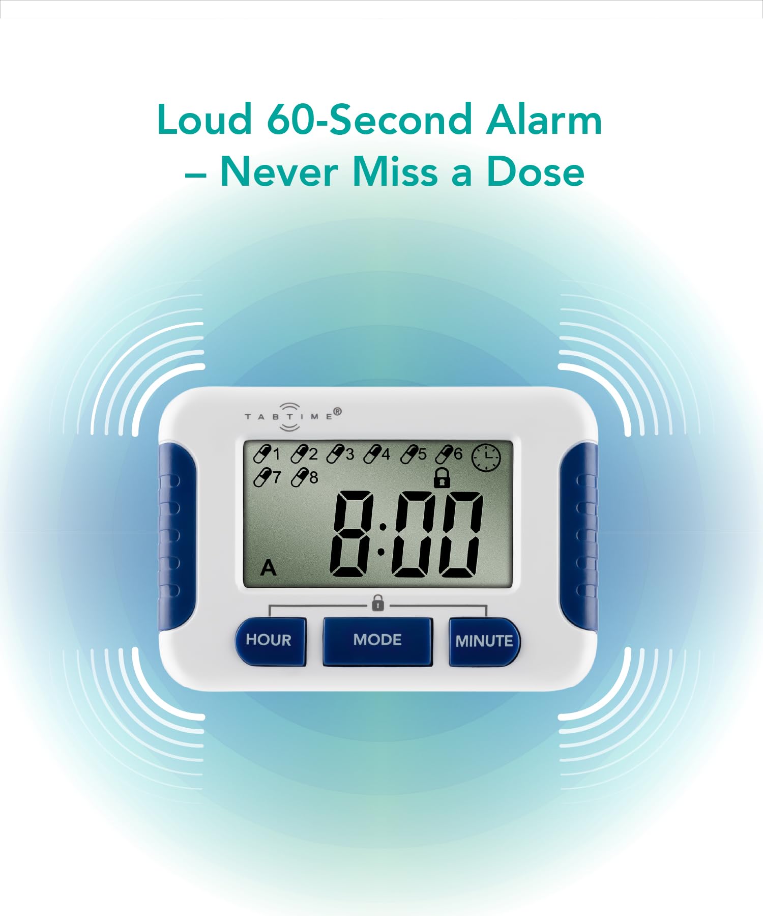 TabTime Pill Reminder with 8 Alarms per Day, Pill Tracker, Pill Timer, Medication Reminder Devices, Medication Tracker, Essential Parkinson's Patient Gadget