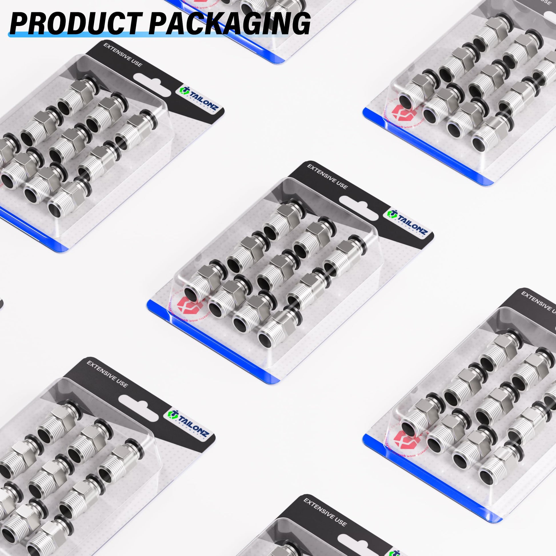 TAILONZ PNEUMATIC Male Straight 1/4 Inch Tube OD x 1/4 Inch NPT Thread Push to Connect Fitting PC-1/4-N2 (Pack of 10)