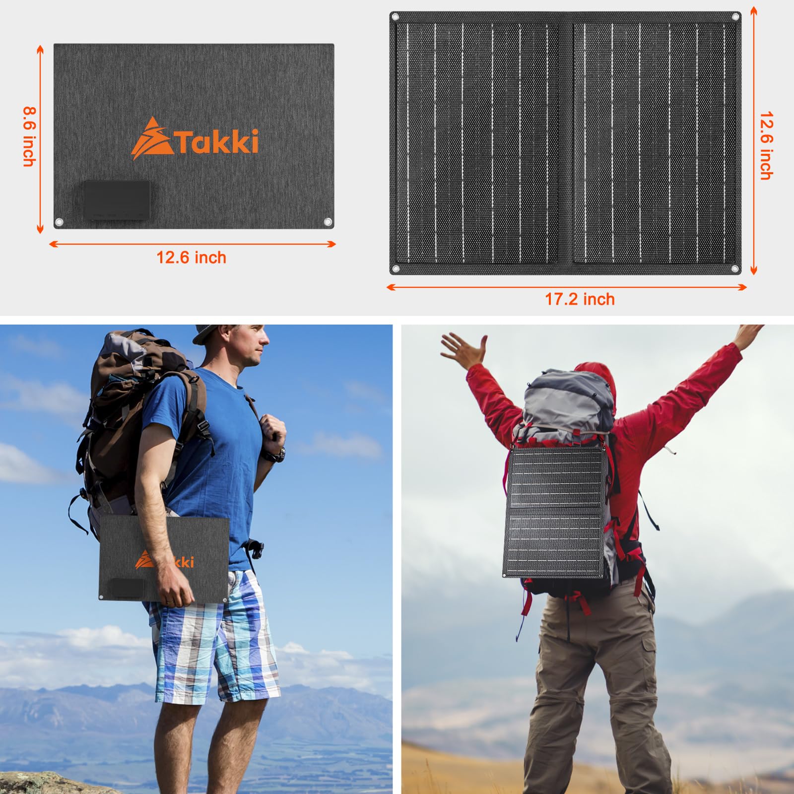• Portable Solar Combination: Takki portable power station 83Wh and 21W foldable solar panel is ideal emergency backup power for outdoor activities, camping, hiking, travel or home power outage. The power station can power devices up to 80W (Peak 120W), if more than that, it will automatically cut off the power protection. When you are outdoors and the power station is running out of power, you can use the solar panel to charge it in an emergency without worrying about power outages.