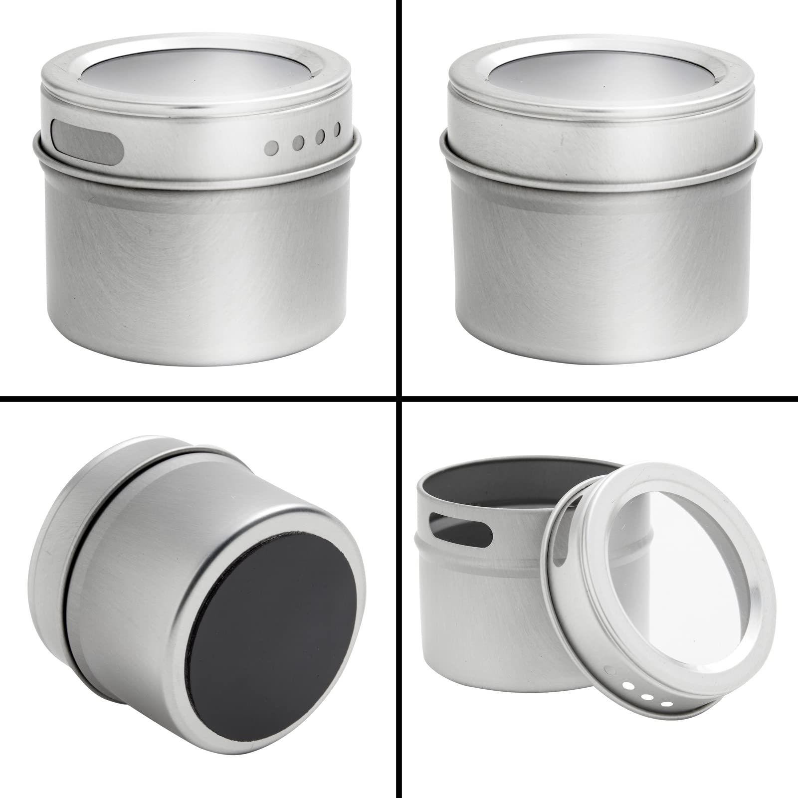 Talented Kitchen Silver Magnetic Spice Jars for Refrigerator (3 oz) - Stainless Steel 12 Spice Containers with Sift & Pour Lids (269 Preprinted Labels and 2 Label Styles)