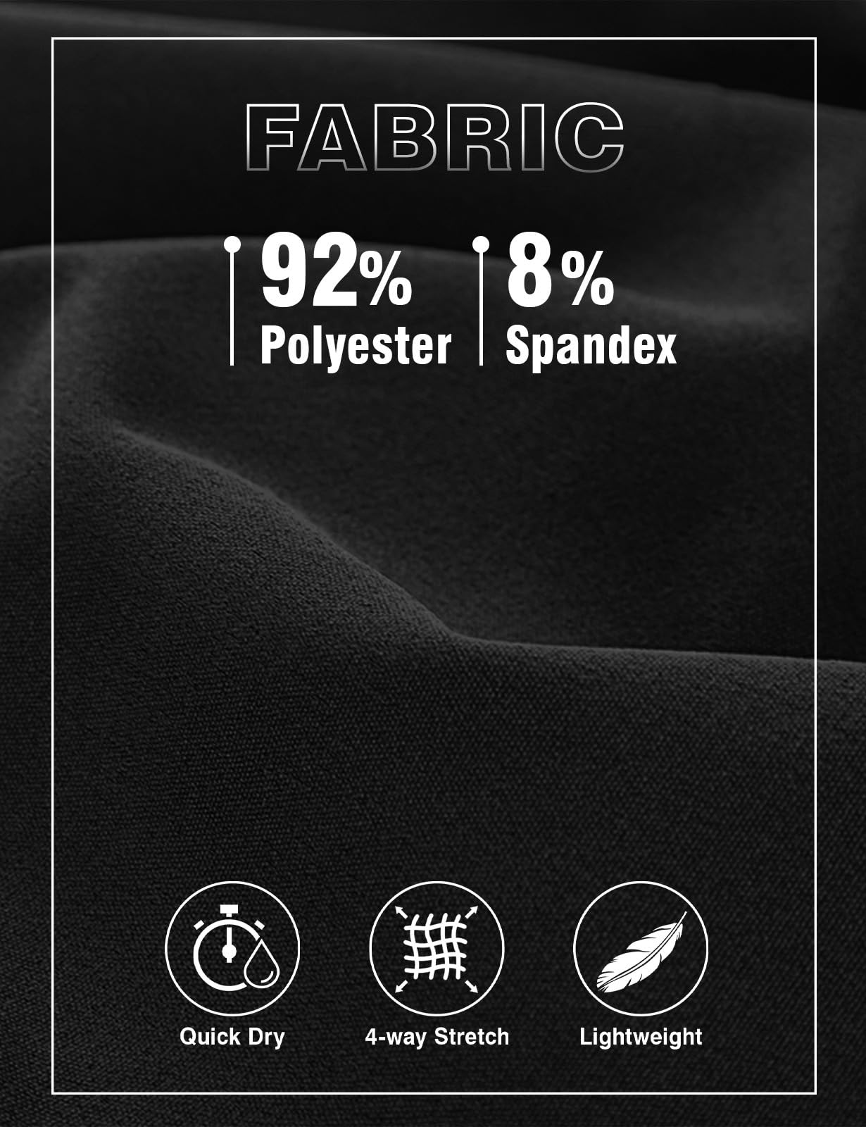 • Quick dry and lightweight 4-way stretch fabric helps to wick away moisture and dry quickly keep you cool in hot summer