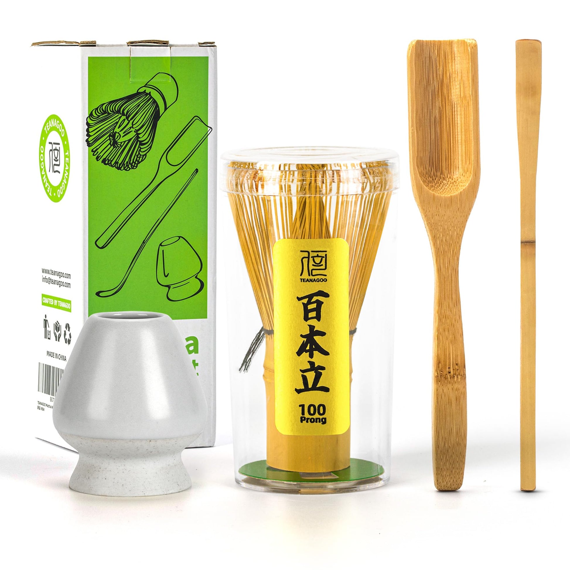 TEANAGOO Matcha Whisk Set, Bamboo Matcha Whisk (Chasen), 4 Pcs Traditional Starter Matcha Set, Scoop (Chashaku) Tea Spoon Whisk Holder, Matcha Accessory, Bamboo Whisk For Matcha Tea (100prongs)