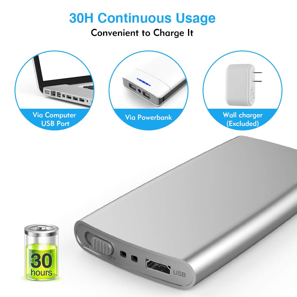 • Rechargeable Battery: Up to 30 Hours of Continuous Use. It can be connected to wall charger, power bank or laptop USB port to charge. Don't worries about treatment interruption for dead AA batteries any more.