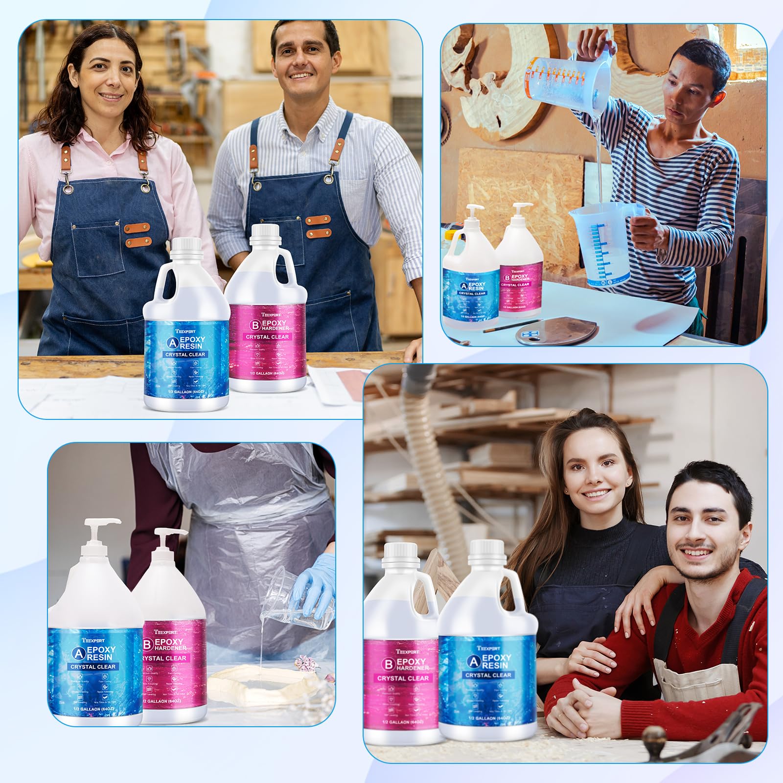 Teexpert Crystal Clear Epoxy Resin Kit 1 Gallon Self-Leveling Coating and Casting Resin, High-Gloss & Bubbles Free Resin and Hardener Kit for DIY Art, Jewelry, Table Top, Molds, Wood 1:1 Ratio