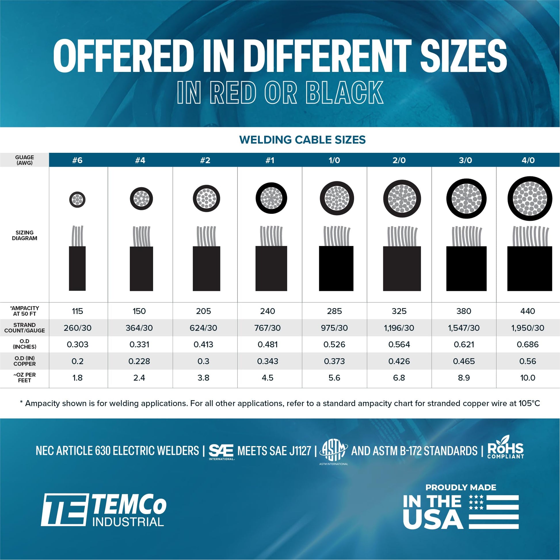 • In addition to welding applications, TEMCo Easy-Flex can be used for battery and starter cables for car/truck/diesel, car audio, solar, RV/camper/van DC systems, winch power leads, battery banks and much more.